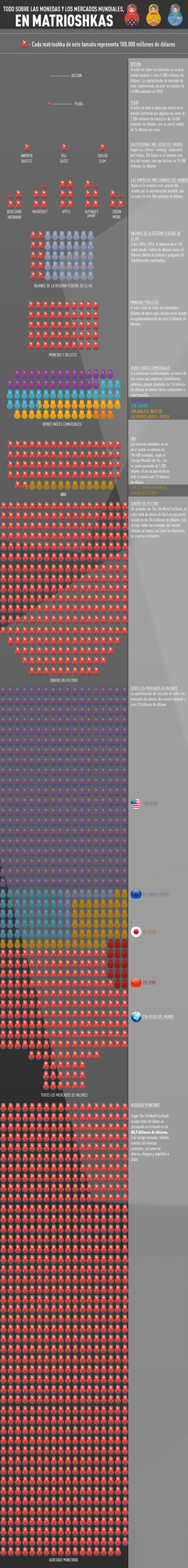 El alza de tasas de la Reserva Federal de EE.UU. (FED) ha agitado al mundo entero. Los procesos económicos están enlazados y cada uno influye en el otro. Situaciones actuales en la economía mundial como la crisis, el escenario en los mercados, la política monetaria, así como los instrumentos de influencia en la economía, parecen ser temas complicados. Pero la siguiente infografía muestra de manera simple la situación actual en el mundo de las monedas y los mercados mundiales, según el portal The Money Project.
