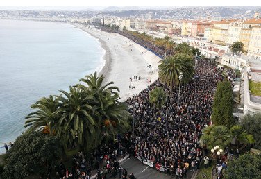 Miles de personas marchan en Niza (Francia) en apoyo a 'Charlie Hebdo'.
