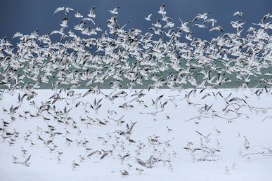Pájaros en la playa de Sochi.