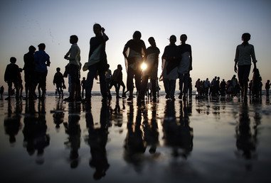 Paseantes en las playas del mar Arábigo en la megalópolis india de Bombay.