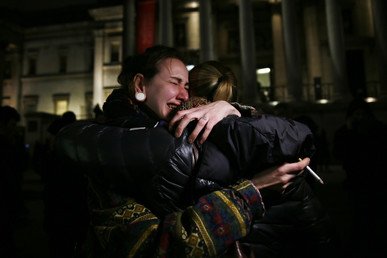 Una mujer llora por las víctimas de 'Charlie Hebdo' en Londres.
