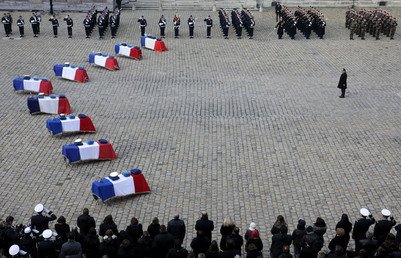 El presidente Francois Hollande honra a nueve miembros de la Fuerza Aérea francesa