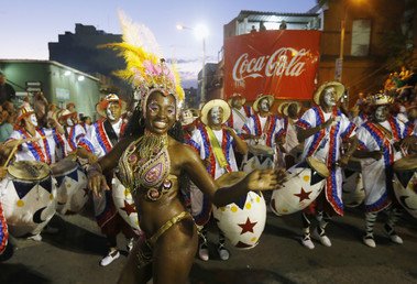 Un trabajador empuja un carrito con latas de refresco delante de un anuncio en Madrid, España