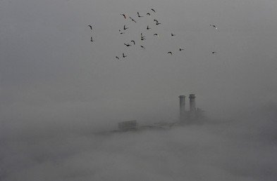 Aves cruzan el cielo en Wuhan, China