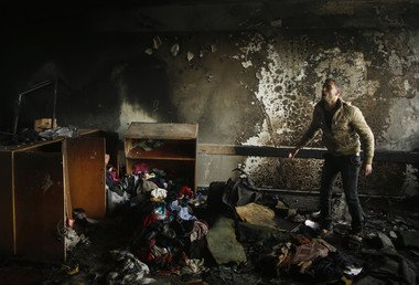 Aula quemada de una escuela de la ONU en el norte de la Franja de Gaza