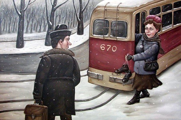 La pintora ucraniana conocida con el alias de Angela Jerih nació en la ahora tristemente famosa ciudad ucraniana de Donetsk en 1965. Su personal visión nostálgica de la vida en la URSS popularizó sus obras en todo el mundo.