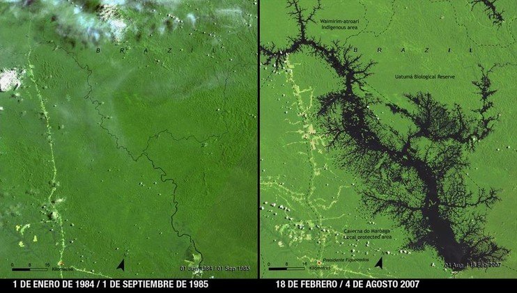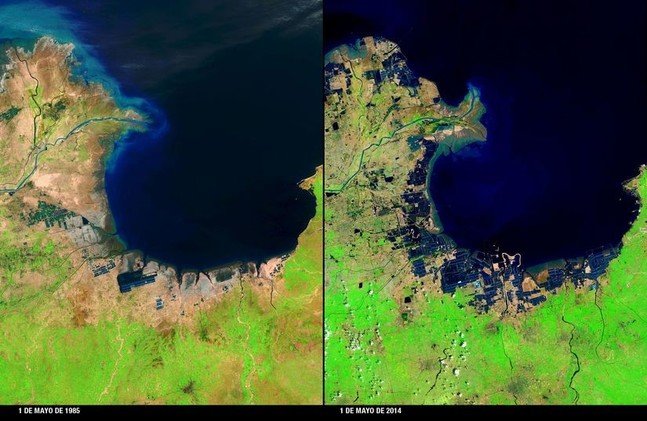 Impactantes imágenes de la NASA muestran cómo la actividad humana en combinación con los efectos de los desastres naturales y el cambio climático, remodelan de manera drástica la faz de nuestro planeta.