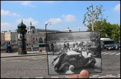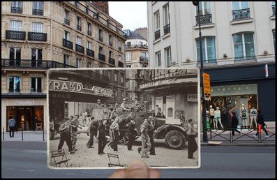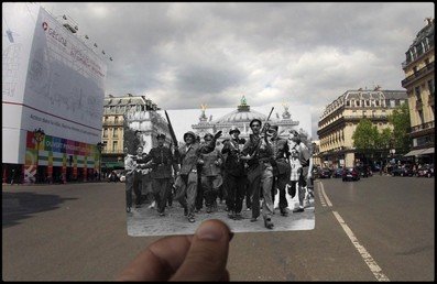 El artista francés Julien Knez ha presentado un proyecto para conmemorar la liberación de París de los nazis, un evento del que el año pasado se cumplieron 70 años. Knez ha combinado fotos que muestran distintas calles de la capital francesa durante la Segunda Guerra Mundial e imágenes actuales de los mismos lugares. En esta galería le presentamos algunas de las fotos, pero puede ver la colección completa en el blog del artista Golem13.
