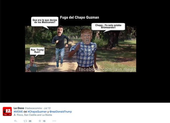 Una ola de memes e ingeniosas burlas inunda la Red tras la fuga del líder del cártel de Sinaloa, Joaquín 'El Chapo' Guzmán Loera, de una cárcel federal de máxima seguridad. En esta galería recogemos algunos ejemplos de la desbordante creatividad de los usuarios de las redes sociales.