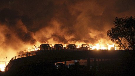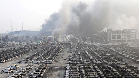 Las fuertísimas explosiones y el incendio declarado en una terminal de carga que almacena materiales peligrosos en la ciudad china de Tianjin han dejado decenas de muertos y cientos de heridos, causando el derumbe de edificios en 10 kilómetros a la redonda. Las explosiones se sintieron como sismos de una magnitud de 2,3 y 2,9, respectivamente, e incluso se percibieron desde el espacio. Por la Red circulan fotos de gente ensangrentada y todo tipo de destrucciones.