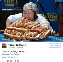 La Organización Mundial de la Salud (OMS) alertó que comer carne procesada como salchichas, embutidos o preparaciones en conserva es cancerígeno. Pero no solo eso, sino que consumir carne roja “probablemente” también provoque cáncer. Tras conocerse la noticia, los internautas se burlaron del informe de la OMS en las redes sociales con divertidos memes bajo la etiqueta #FreeBacon.