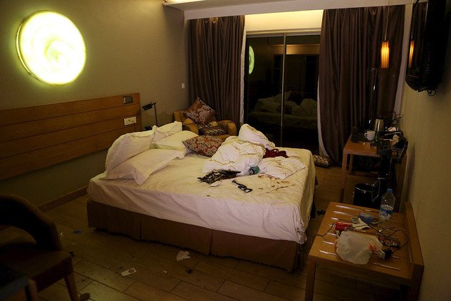 Este viernes un hotel de lujo de la cadena Radisson en Bamako, la capital de Mali, fue escenario de una sangrienta toma de rehenes a manos del grupo terrorista Al Mourabitoun, que se saldó con al menos 19 muertes. Estas fotografías tomadas en el hotel lujoso reflejan las consecuencias del ataque brutal: charcos de sangre y símbolos yihadistas dejados por los terroristas en el lugar del atentado.