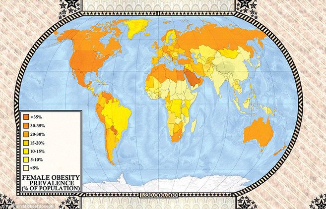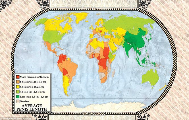 El diseñador gráfico eslovaco Martin Vargic ha diseñado una serie de mapas en los que compara los países basándose en diferentes datos: desde qué naciones cuentan con mayor tasa de divorcios o de población carcelaria hasta dónde viven los hombres y mujeres mejor dotados. Para ampliar una imagen haga doble clic sobre ella.