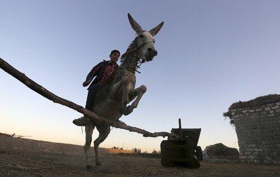 Ahmed Ayman, un adolescente egipcio que vive en un pequeño pueblo en el norte de la delta del Nilo, practica la hípica con su burro. Mohamed Abd / Reuters