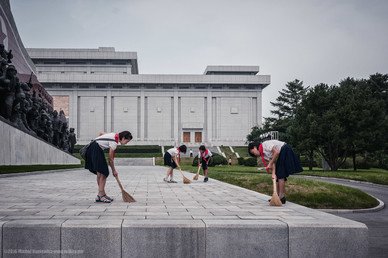 Michal Huniewicz es un fotógrafo afincado en Londres que hace poco visitó como turista la capital norcoreana, captando con su cámara la cara más sobrecogedora y presumiblemente cotidiana de la ciudad y de sus habitantes. Las imágenes muestran momentos y paisajes que los ciudadanos y autoridades norcoreanos probablemente no aceptarían que se fotografiasen.