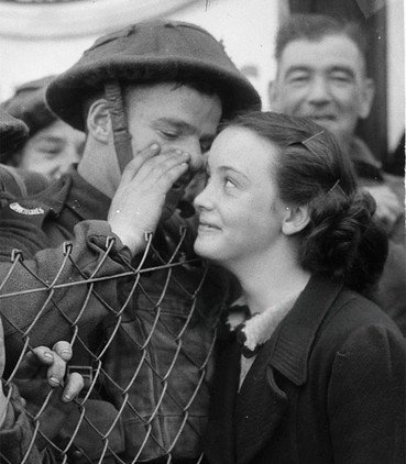 Muchos protagonistas de estas fotografías, que en mayoría fueron tomadas durante la Segunda Guerra Mundial, no sabían si volverían a verse algún día. Conmovedoras despedidas y apasionados reencuentros reflejan toda la fuerza del amor, que no conoce de impedimentos ni obstáculos.
