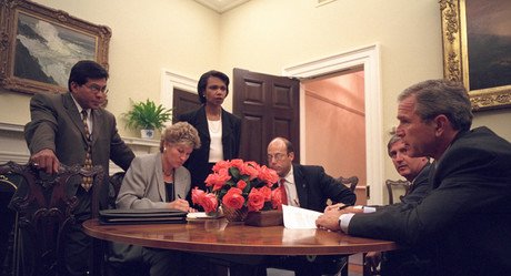 Los Archivos Nacionales de EE.UU. continúan publicando fotografías que muestran reacciones inéditas de George Bush, entonces presidente estadounidense, ante la sucesión de atentados terroristas del 11 de septiembre de 2001. Hay un antes y un después de las famosas imágenes que muestran a un Bush atónito en el momento en que su jefe de gabinete, Andrew Card, interrumpe una charla en una escuela para susurrarle la información.