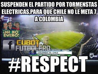 La selección de Chile se ha clasificado para la final de la Copa América tras ganar 2-0 a Colombia, y se enfrentará a Argentina en la final que se disputará este domingo. Como de costumbre el encuentro ha generado una ola de memes en la Red, algunos de ellos dedicados al retraso de casi dos horas en el inicio del segundo tiempo por razones meteorológicas. Disfrute de los más divertidos.