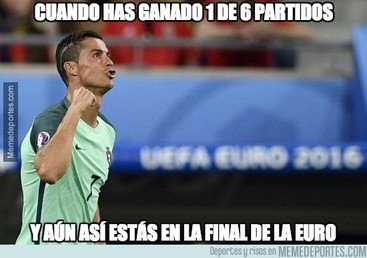 Este jueves Cristiano Ronaldo y Nani le dieron la victoria a los lusos para pasar a la final de esta Eurocopa, dejando fuera del campeonato a la Selección de Gales. Ahora Portugal deberá esperar a su rival, que saldrá del duelo entre Francia y Alemania. Disfrute con los memes más divertidos que han dejado los aficionados al fútbol en la Red tras el encuentro.