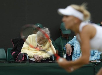 Una espectadora duerme durante un partido de las tenistas rusas Yekaterina Makárova y Yelena Vesniná en el torneo de Wimbledon.Paul Childs