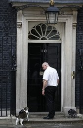 Larry, el gato de David Cameron, espera que le dejen entrar al número 10 de Downing Street, la residencia del primer ministro británico en Londres. Peter Nicholls