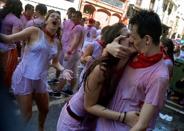 Una pareja besándose durante las fiestas de San Fermín, en Pamplona, España. Vincent West / Reuters