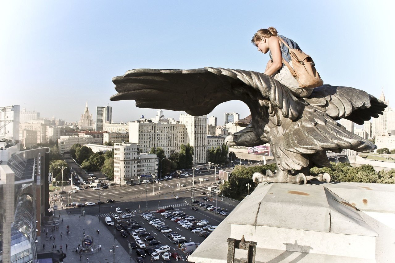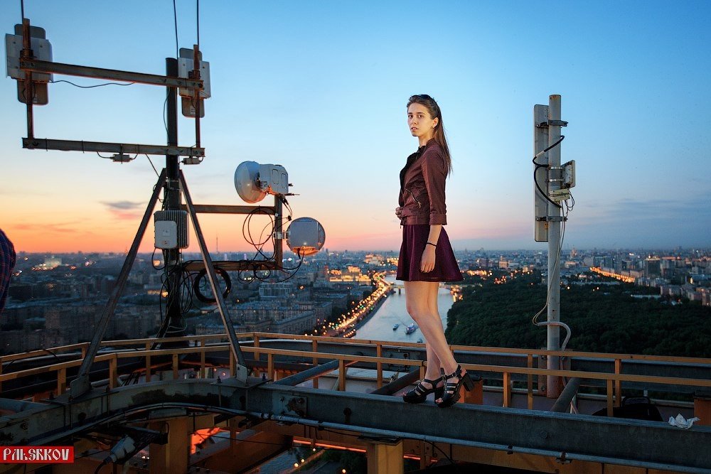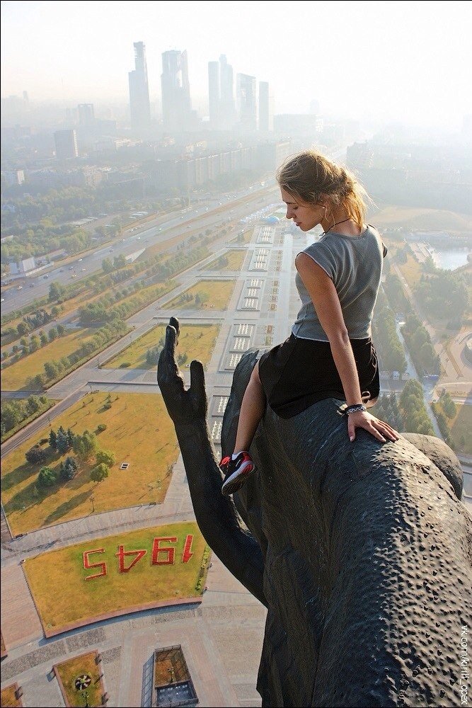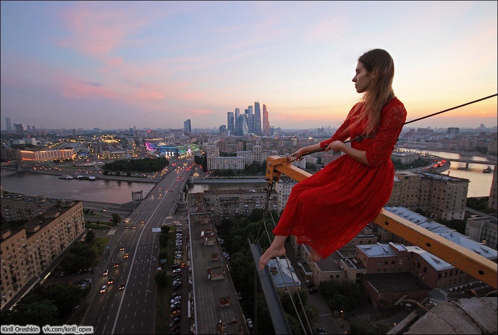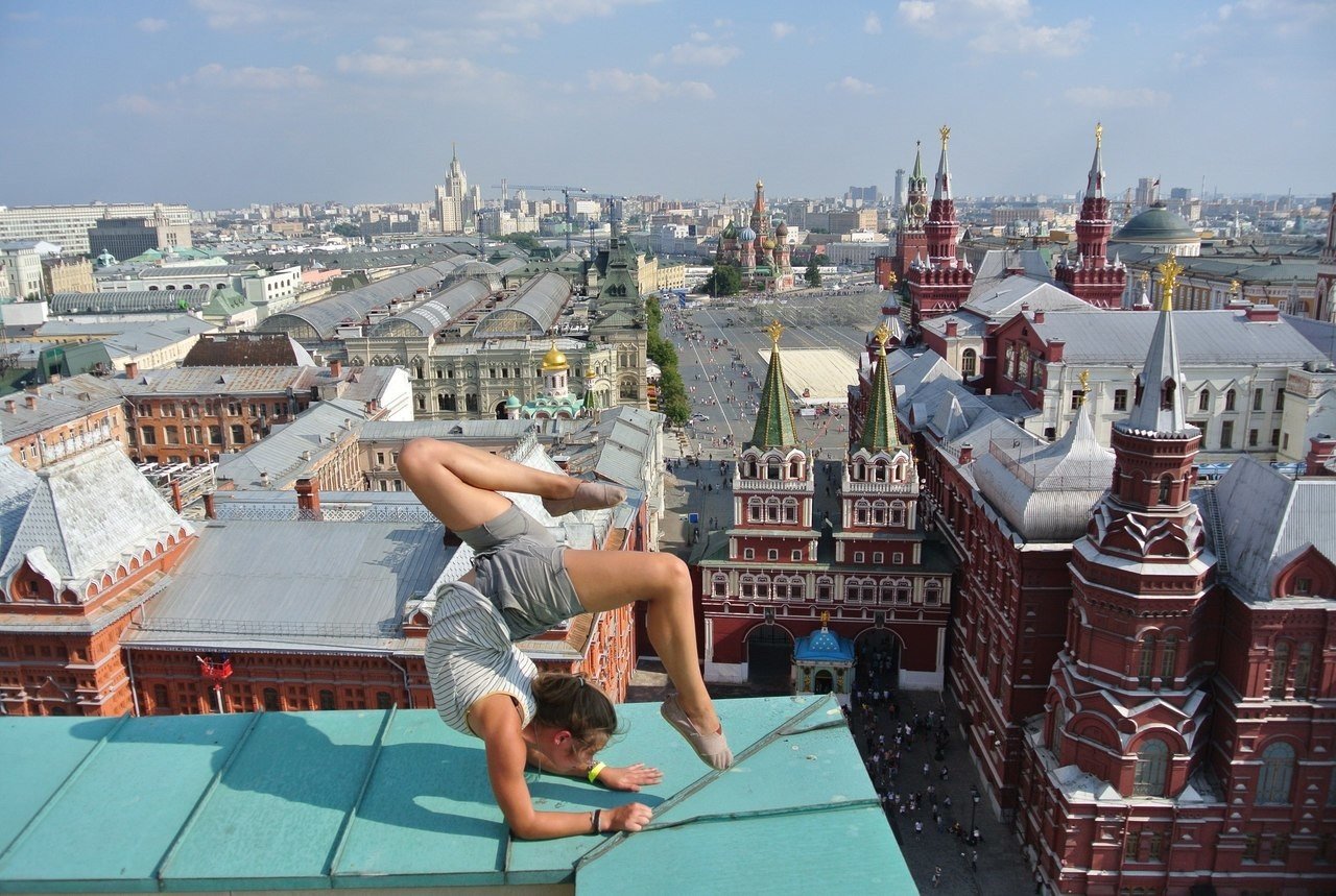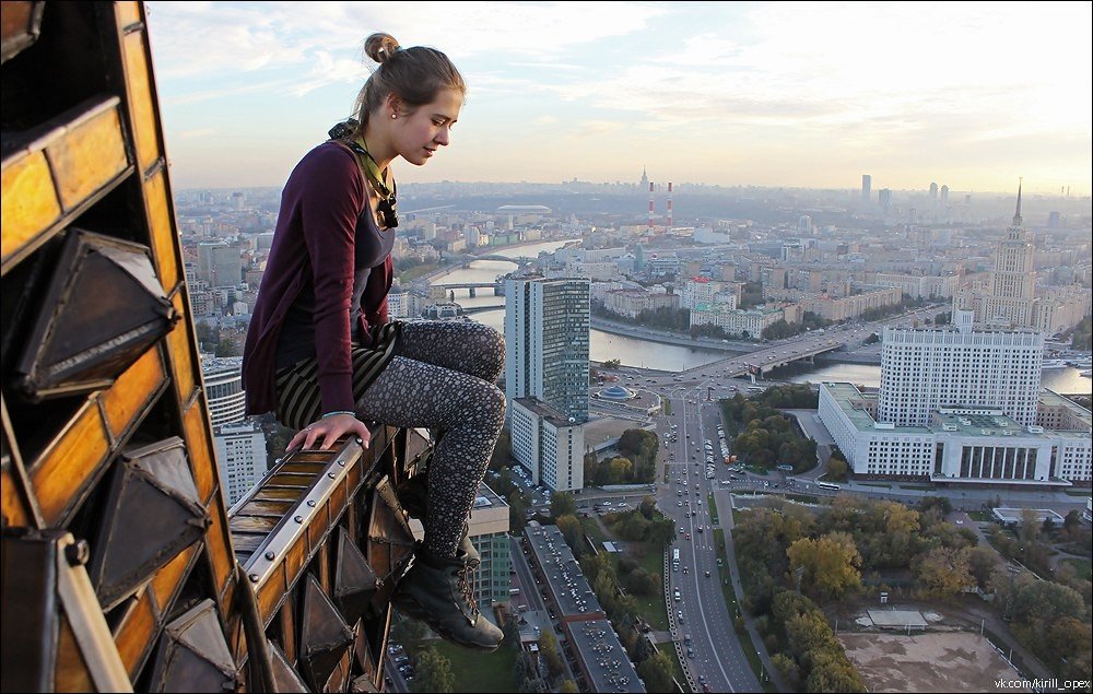 Angela Nikolau, una bloguera moscovita de 23 años, es conocida por su afición a las alturas. En la mayoría de sus imágenes, esta joven aparece fotografiada al borde de rascacielos y otros lugares a gran altura. Mirando sus instantáneas parece que, si realizara un movimiento inadecuado o sufriera una ráfaga de viento repentina, no podría volver a publicar nada en su cuenta de Instagram.