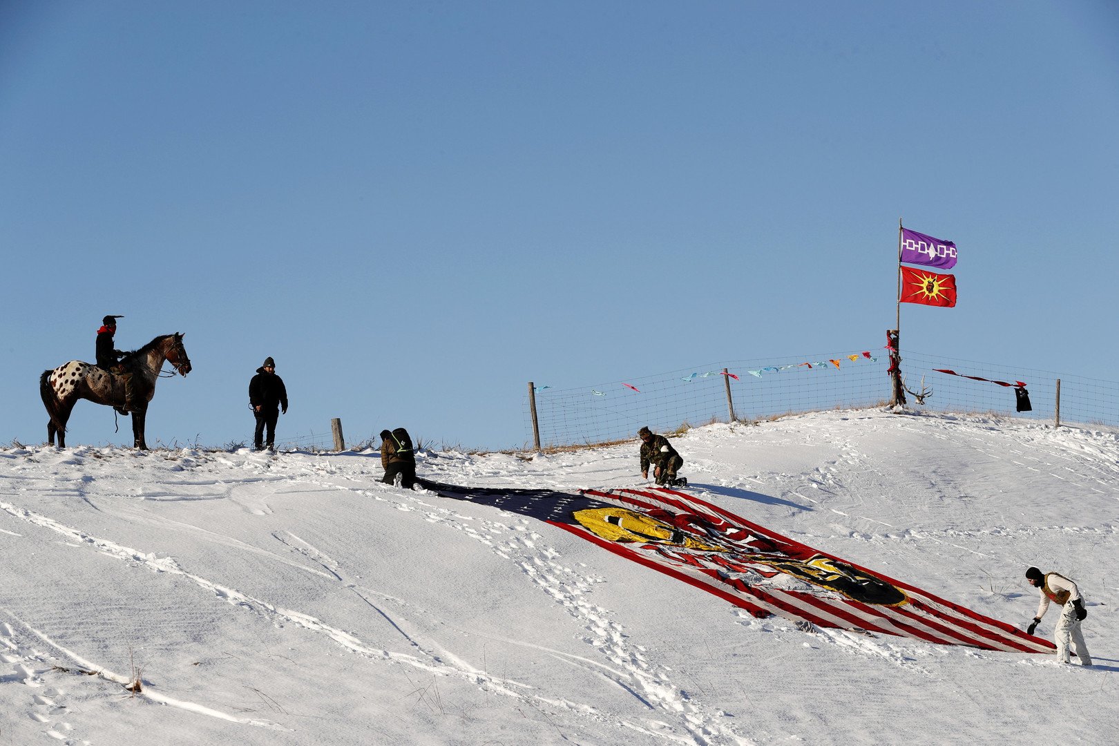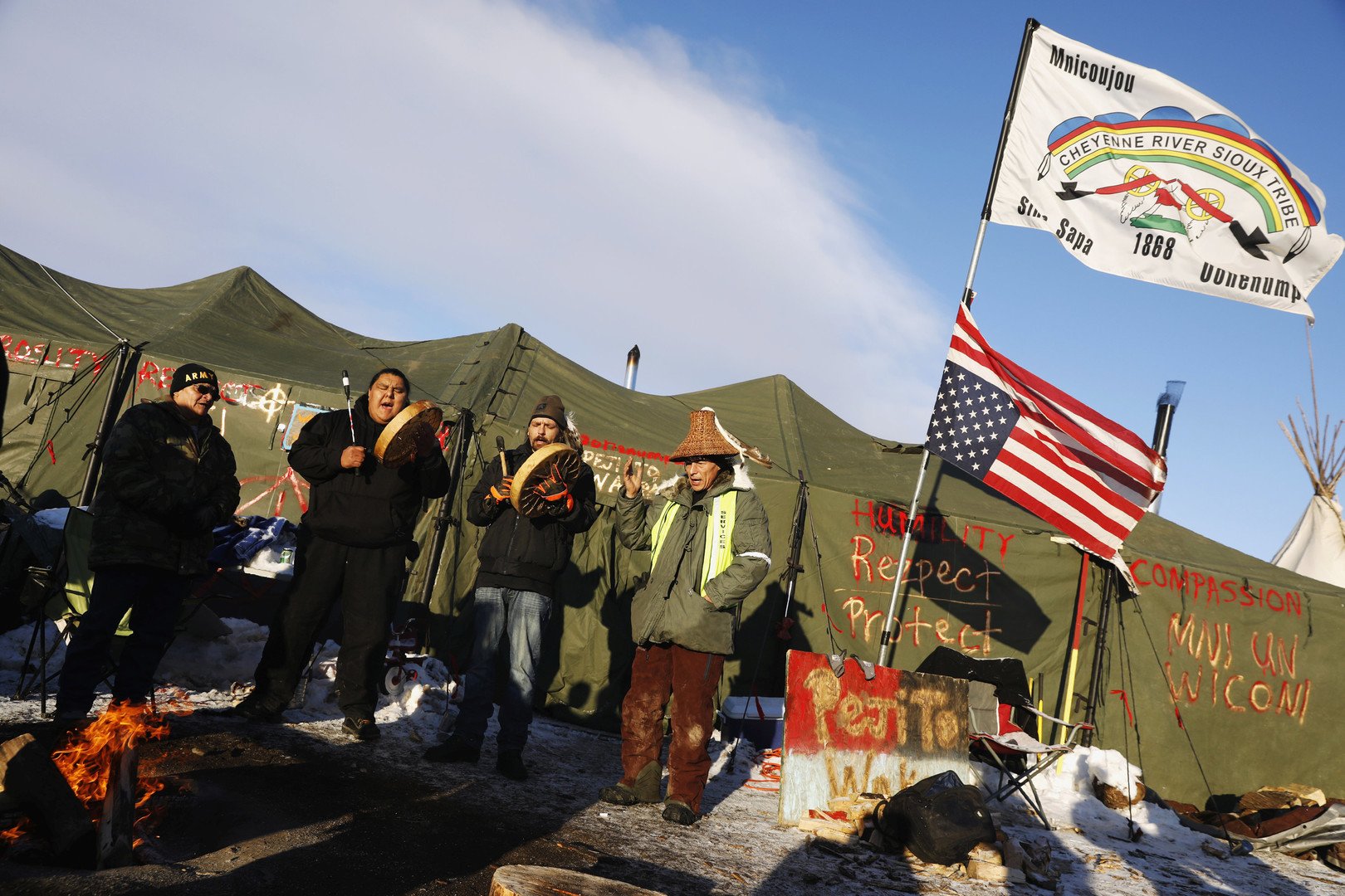 Un grupo de activistas estadounidenses finalmente ha conseguido forzar un cambio de ruta para el polémico oleoducto Dakota Access, que estaba previsto ser construido en tierras de una reserva de la tribu india Sioux. Tras la declaración de cancelación de la construcción publicada este domingo, el ambiente triunfador y festivo ha invadido la reserva. Las imágenes presentadas en esta galería reflejan las celebraciones que se están produciendo en estas tierras sagradas para los Sioux.