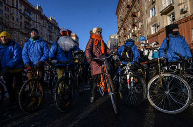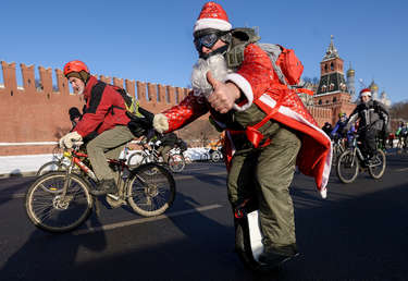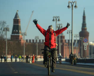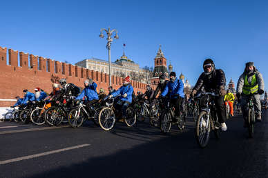 500 atrevidos participan en una prueba ciclista en Moscú a pesar del frío extremo