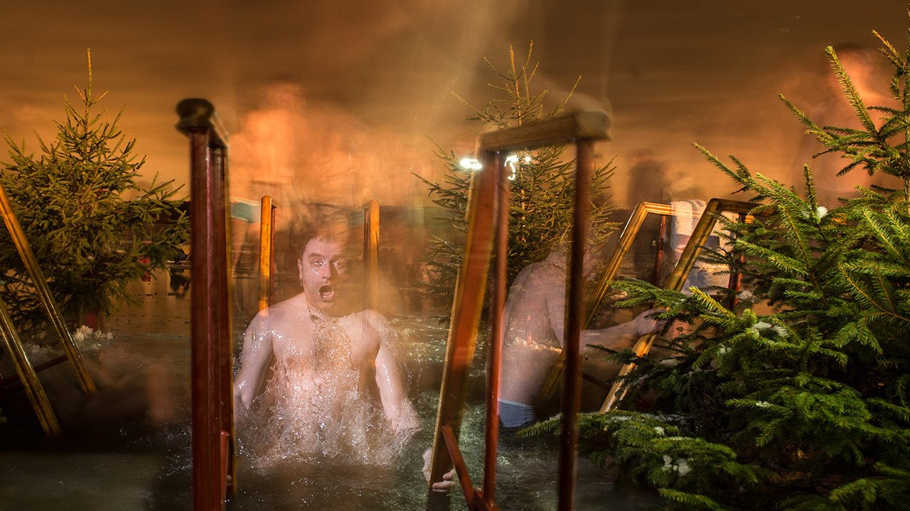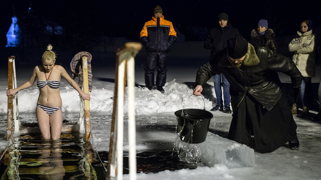 La noche del 18 al 19 de enero los creyentes ortodoxos rusos celebran la epifanía, que conmemora el bautismo de Jesucristo, y lo hacen sumergiéndose en agua helada a pesar del frío invernal.