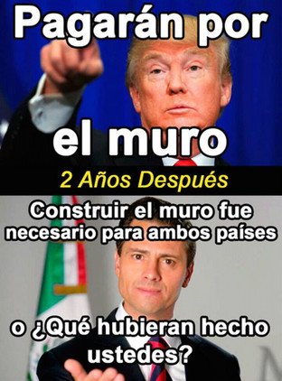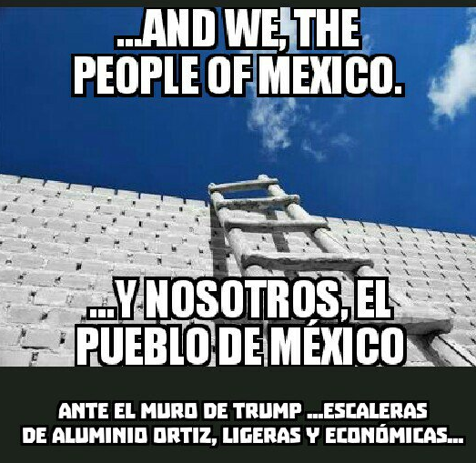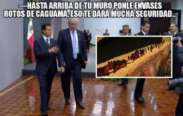 A pesar del conflicto diplomático que supone para EE.UU. y México la construcción del muro fronterizo prometido por Donald Trump, eso no ha hecho mella en el sentido del humor y la creatividad de los internautas. Les dejamos que disfruten de los mejores memes que circulan por las redes al respecto.