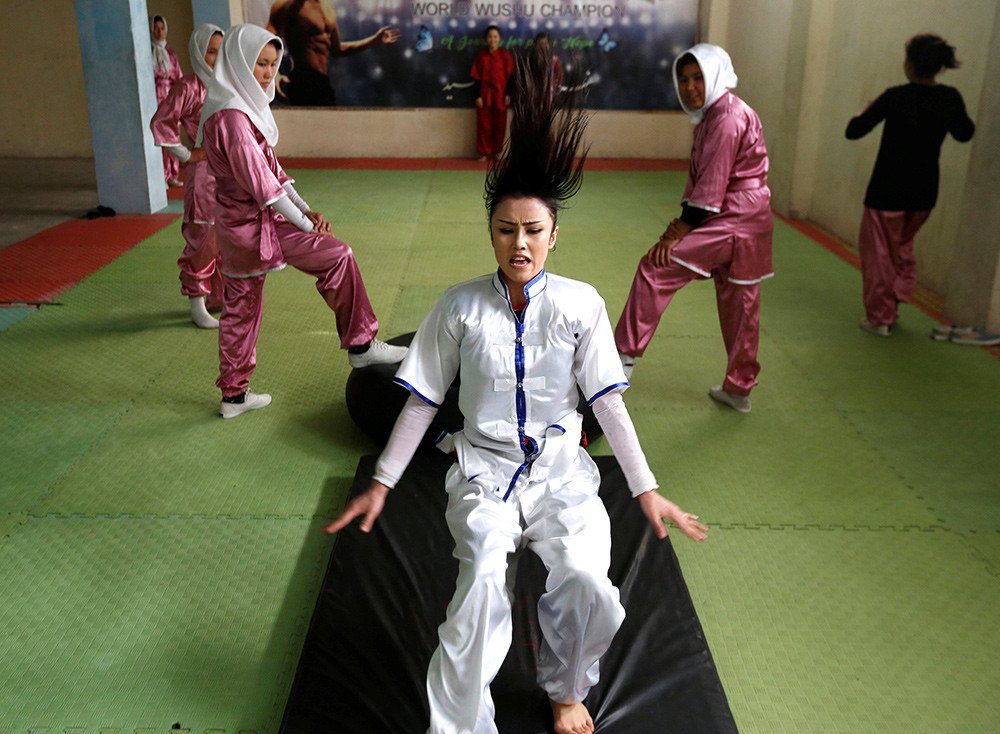 El club de Wushu de Kabul, creado por la afgana Sima Azimi de 20 años, es casi la única organización deportiva de artes marciales para mujeres en la capital afgana. La mayoría de las estudiantes del club proceden de los hazara, y, según las tradiciones de este grupo étnico, las mujeres tienen permiso para practicar deporte, en oposición a las de otras etnias. Sin embargo, según Azimi, todas sus alumnas se enfrentan a ataques e insultos de la comunidad.