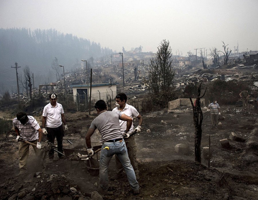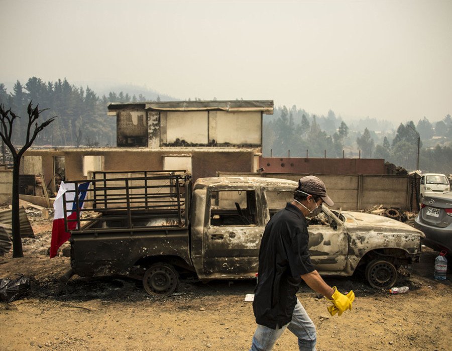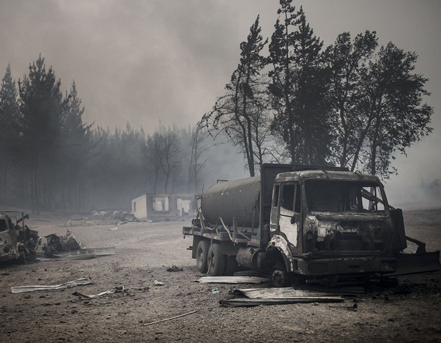 La ciudad de Santa Olga fue completamente destruida por los incendios forestales que asolan el país chileno. "Teníamos la sensación de que habíamos llegado al fin del mundo", describe el fotógrafo de AFP, Pierre Celerier. "Solo había unos pocos vecinos en medio de las cenizas y el humo”, relata Celerier, que recuerda las palabras de los afectados: "Es como una bomba atómica". Para ayudar a combatir la catástrofe, Rusia ha enviado a Chile el avión Ilyushin Il-76, conocido como 'El Luchín'.