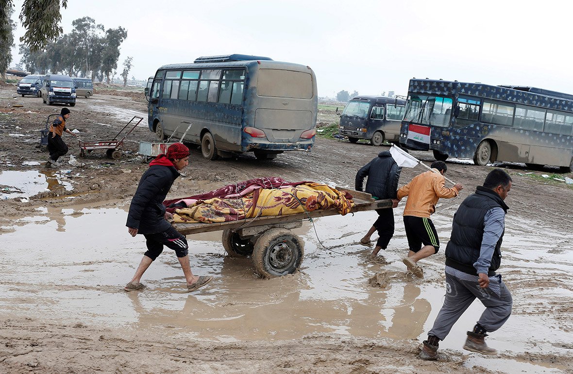 En las imágenes, que no pueden dejar indiferente a nadie, los iraquíes exhaustos que huyen de las zonas controladas por el Estado Islámico de la ciudad de Mosul parecen empujar sus posesiones en carros de mano. Sin embargo, su carga es mucho más preciada, y más trágica. Bajo las mantas sucias se encuentran los cuerpos cubiertos de sangre de niños muertos en ataques aéreos.