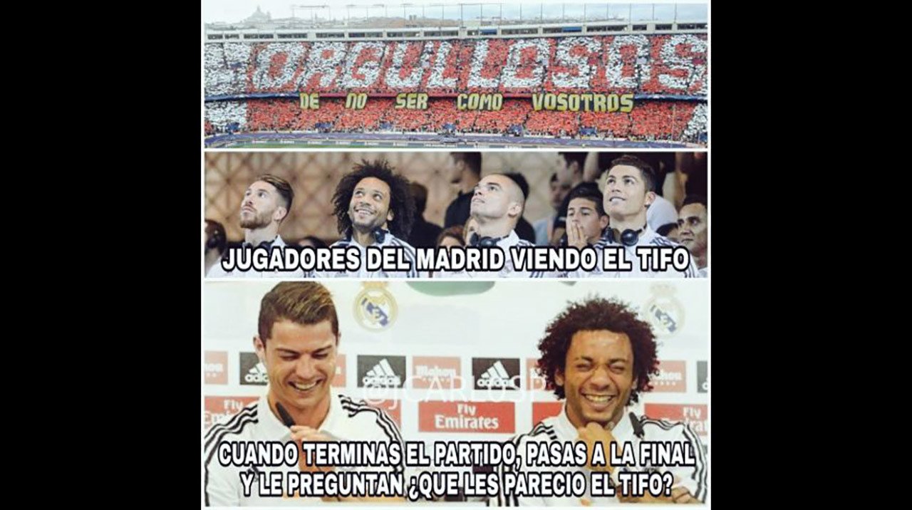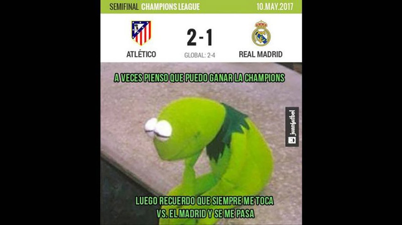 Este miércoles el Real Madrid perdió 2-1 frente al Atlético de Madrid, pero la victoria lograda en la ida (3-0) fue suficiente para que el equipo ‘merengue’ pase en la gran final de la Liga de Campeones. El encuentro, como ya es tradición, ha generado una ola de memes y bromas en la Red.