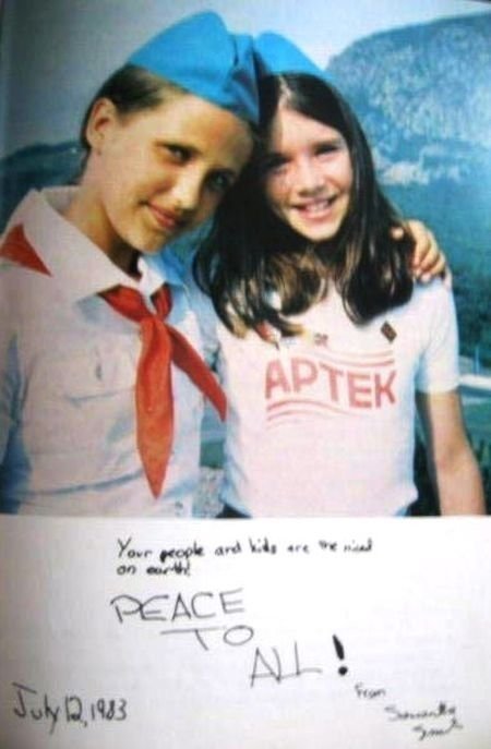 Un día como hoy de hace 45 años nació en EE.UU. Samantha Smith, que en 1982, con solo 10 años, escribió una carta al secretario general de la URSS, Yuri Andrópov, en la que le preguntaba "por qué [los soviéticos] quieren conquistar al mundo o al menos nuestro país". En respuesta, Andrópov la invitó a visitar su país, después de lo cual Samantha escribió un libro y afirmó que la URSS "no desea ningún mal para el mundo, al igual que nosotros". Samantha murió a los 13 años en una catástrofe aérea.