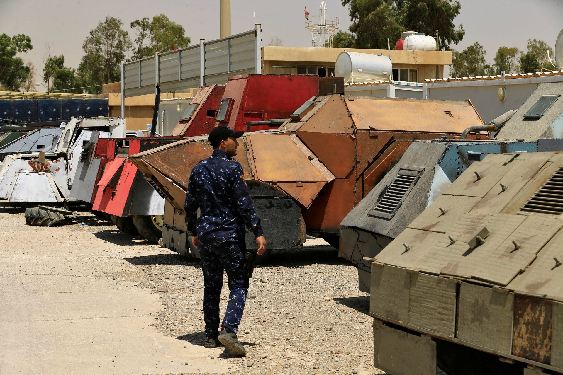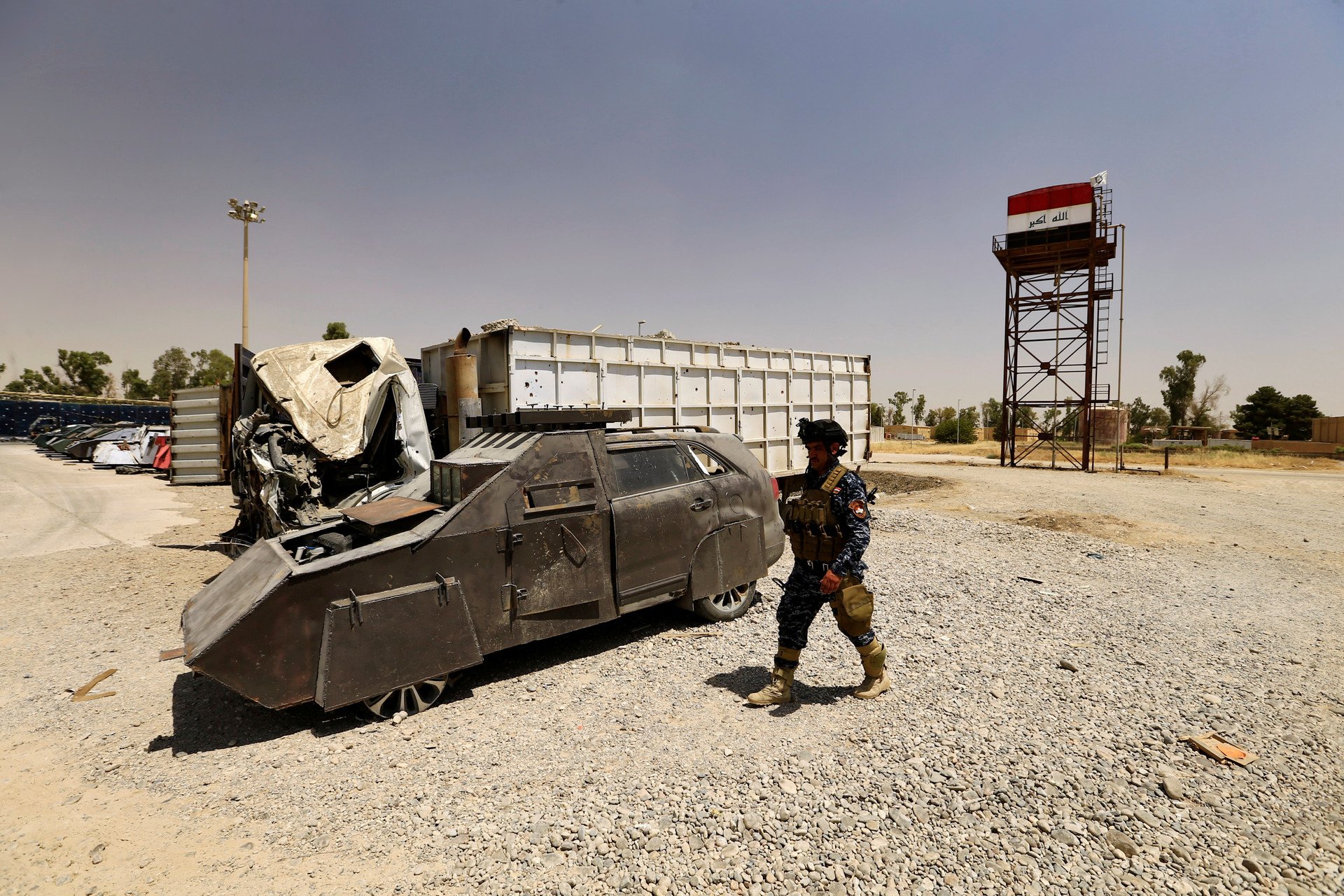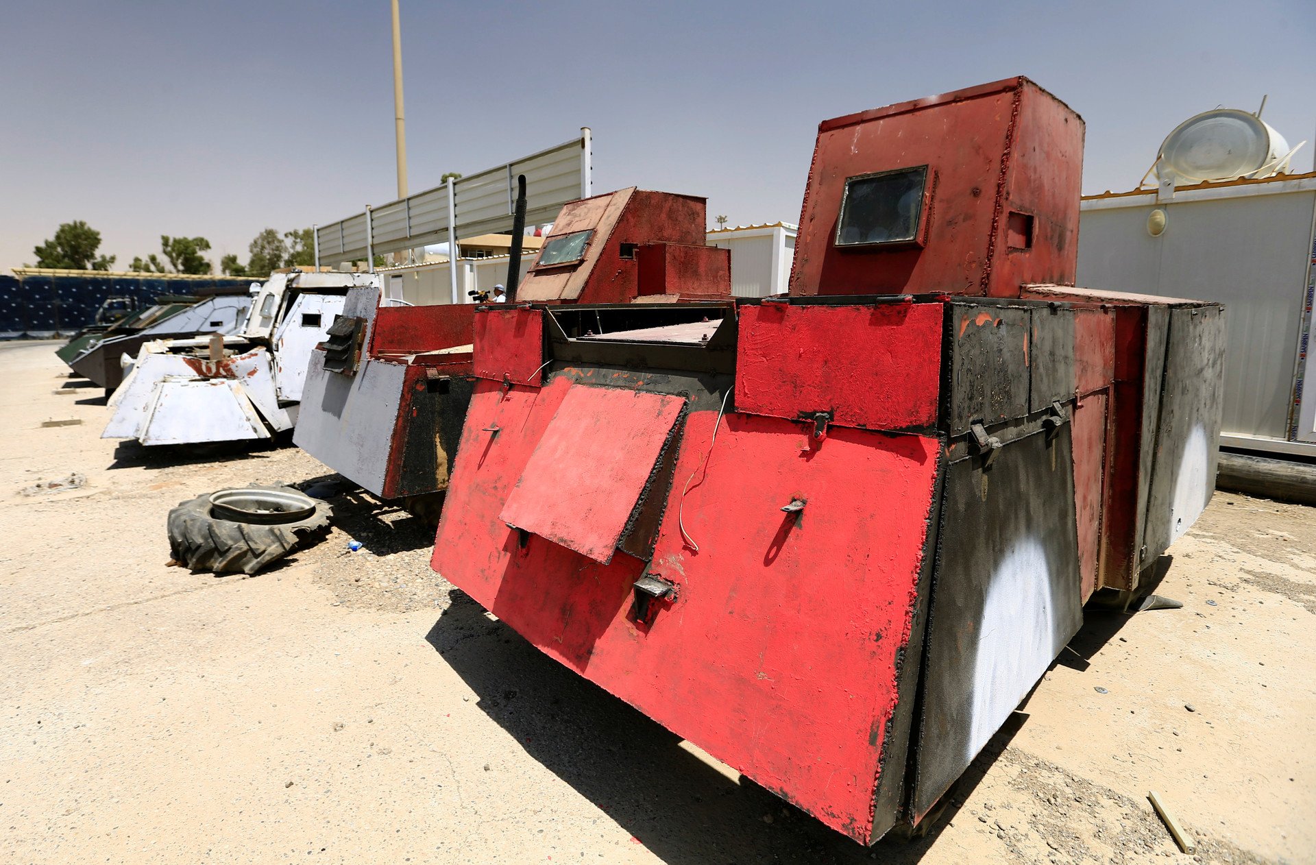 Tras ser liberada la ciudad de Mosul por las fuerzas de seguridad iraquíes y sus aliados, autoridades policiales de la nación árabe decidieron exhibir los coches bomba abandonados por el Estado Islámico y que eran utilizados para cometer atentados. Entre los vehículos se observan automóviles todoterreno, blindados con capas de metal que los asemejan a tanques de guerra.