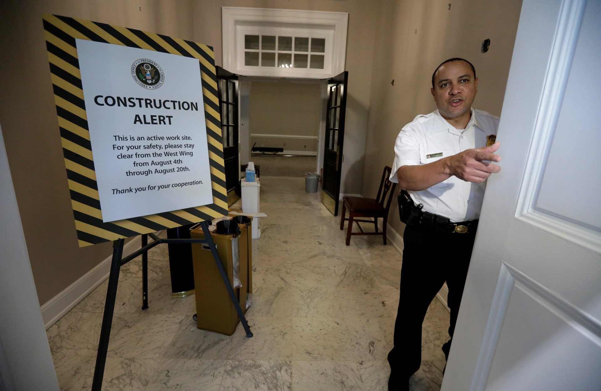 Mientras el presidente Donald Trump se encuentra de vacaciones, el ala oeste de la Casa Blanca está en obras. En la residencia del jefe de Estado cambiarán los acondicionadores de aire y el sistema de ventilación por unos nuevos, realizarán reparaciones en las tuberías de la oficina de prensa, pintarán las paredes y renovarán las escaleras.