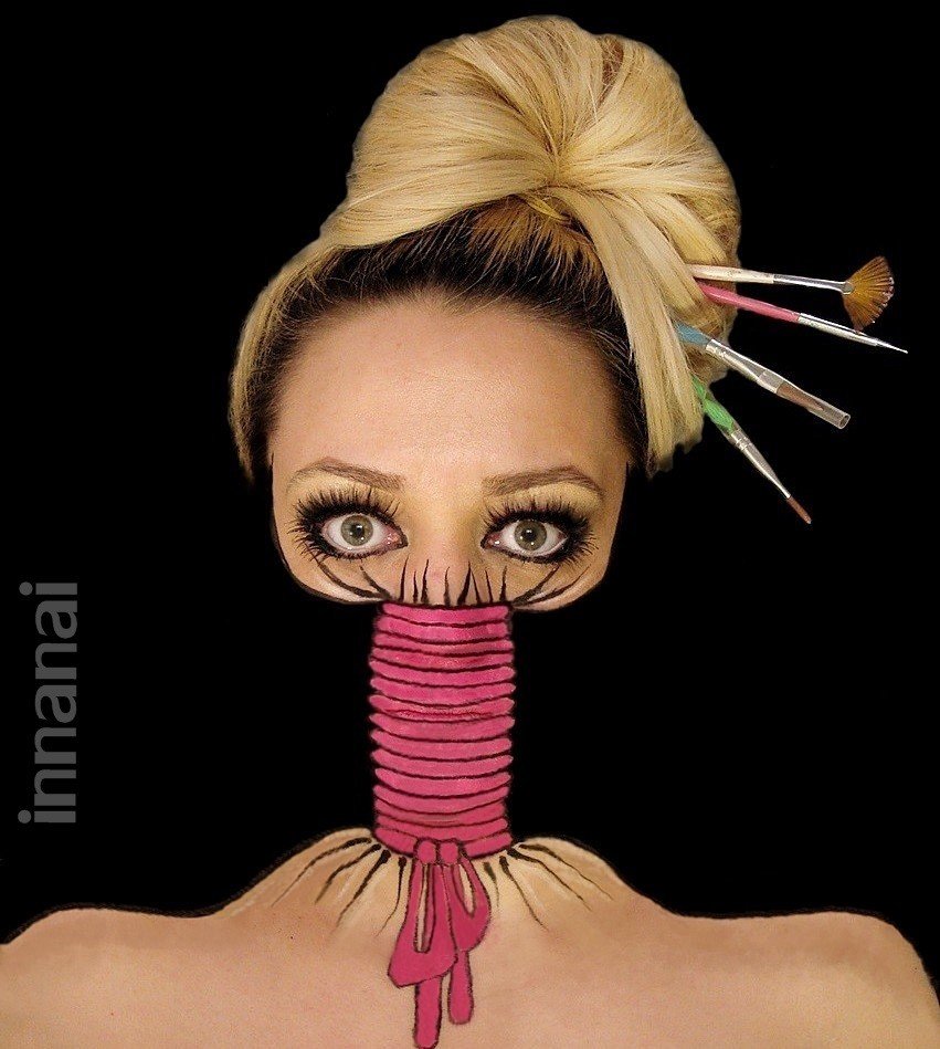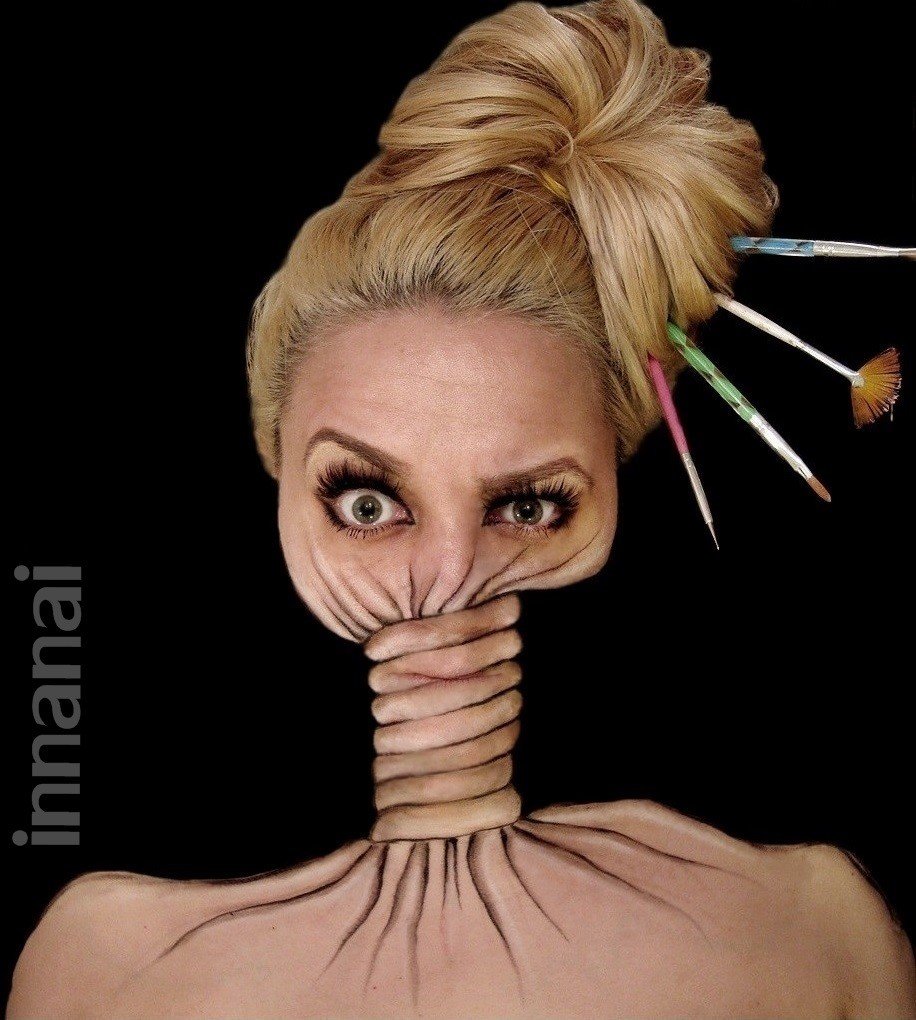 Ines Kus, diseñadora de Zagreb (Croacia), cultiva muchas expresiones artísticas, desde la pintura hasta la fotografía. Pero su actividad favorita pasa por la creación de ilusiones ópticas 'retorcidas' y surrealistas que plasma en su propia cara y cuerpo. La joven asegura que invierte hasta 12 horas para elaborar cada una de estas imágenes impresionantes que recogemos en esta galería.