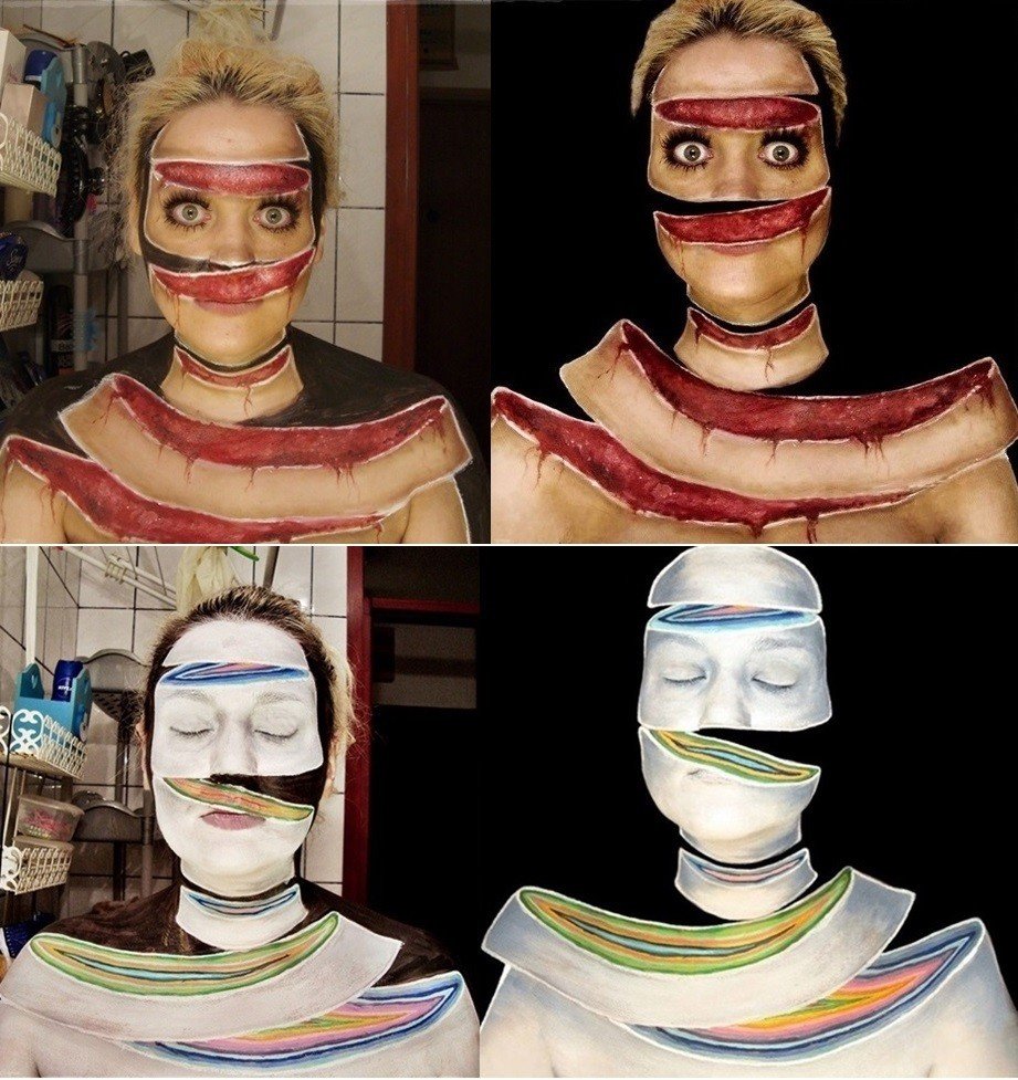 'No apto para sensibles': Esta diseñadora se 'retuerce' la cara con espeluznantes ilusiones óptica