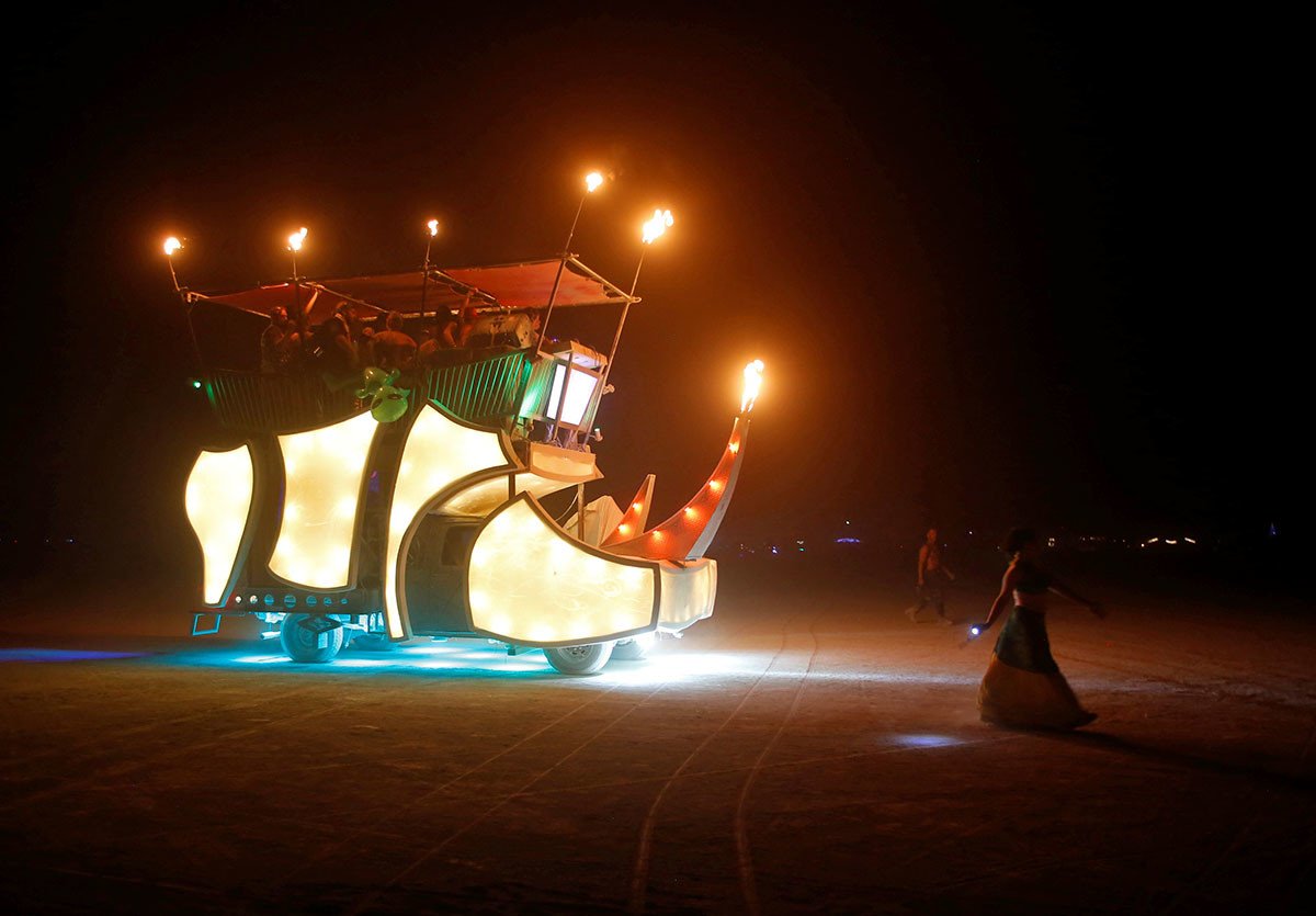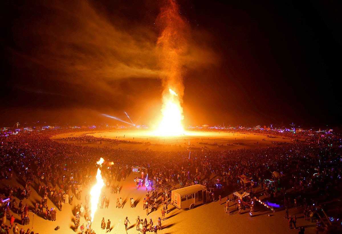 El excéntrico festival de música y arte 'Burning Man' ('Hombre en Llamas') que se celebra cada año en el desierto de Black Rock en Nevada (EE.UU.) ha vuelto a impresionar a sus participantes. Entre el 27 de agosto y el 4 de septiembre, más de 70.000 personas de todo el mundo se dieron cita para contemplar instalaciones y esculturas de fantasía, asistir a talleres, conciertos y ceremonias relacionados con el tema de la luz, el fuego y llamas.