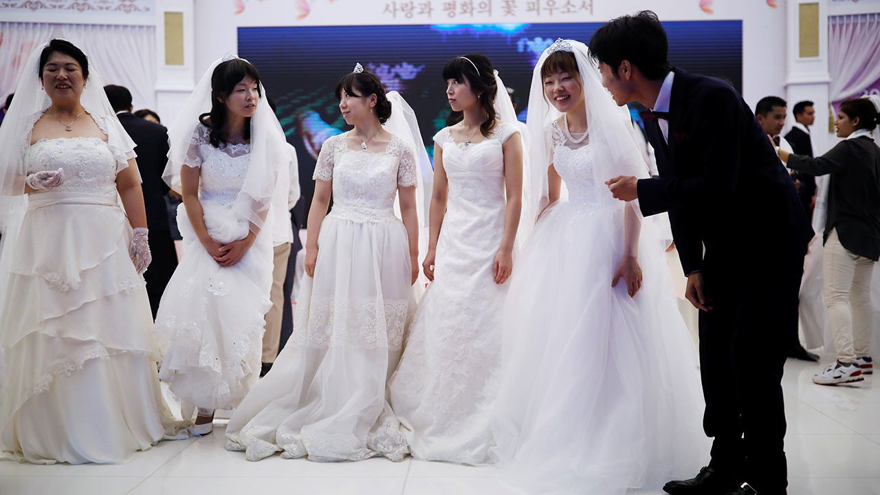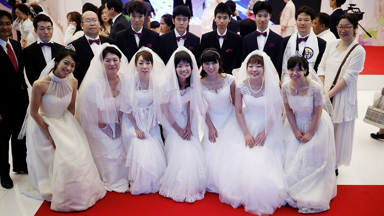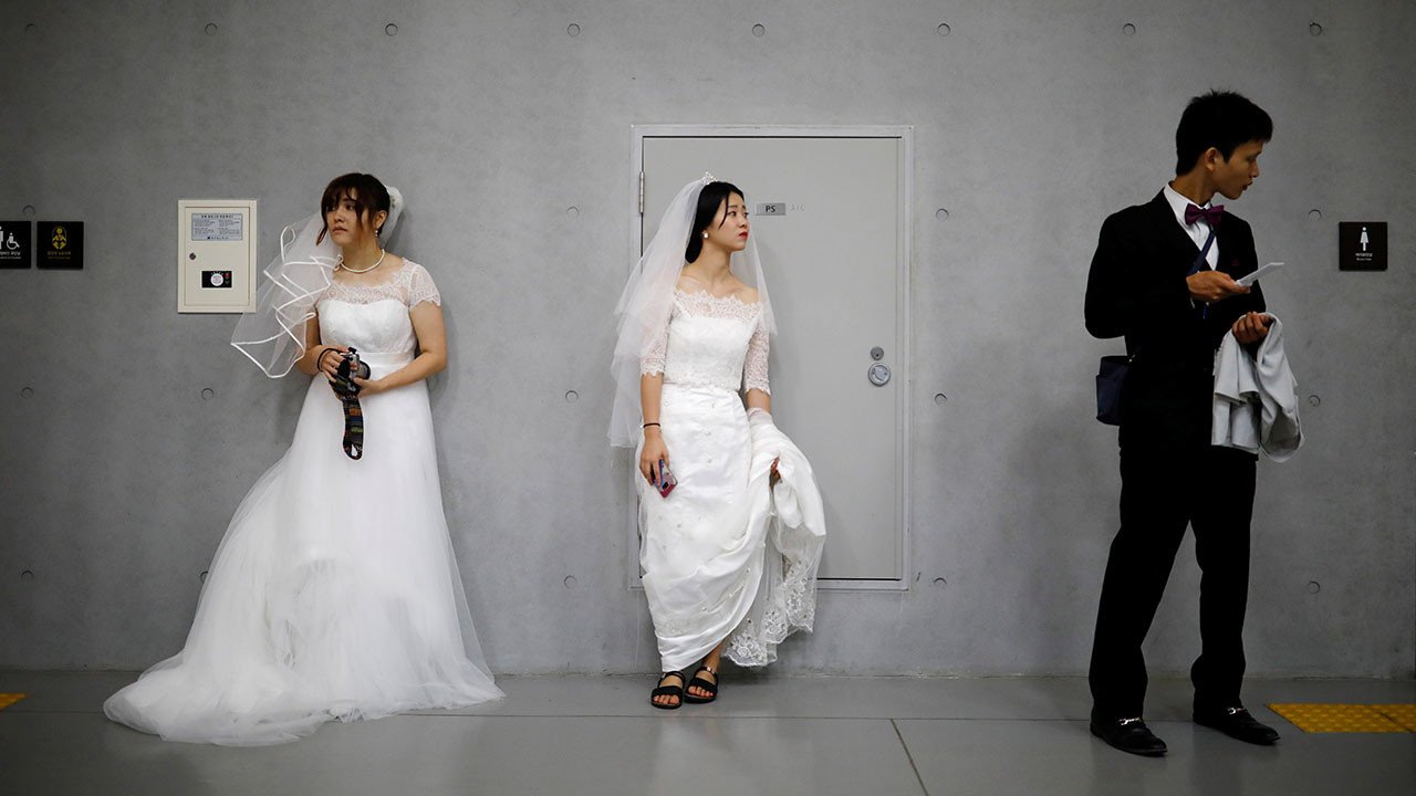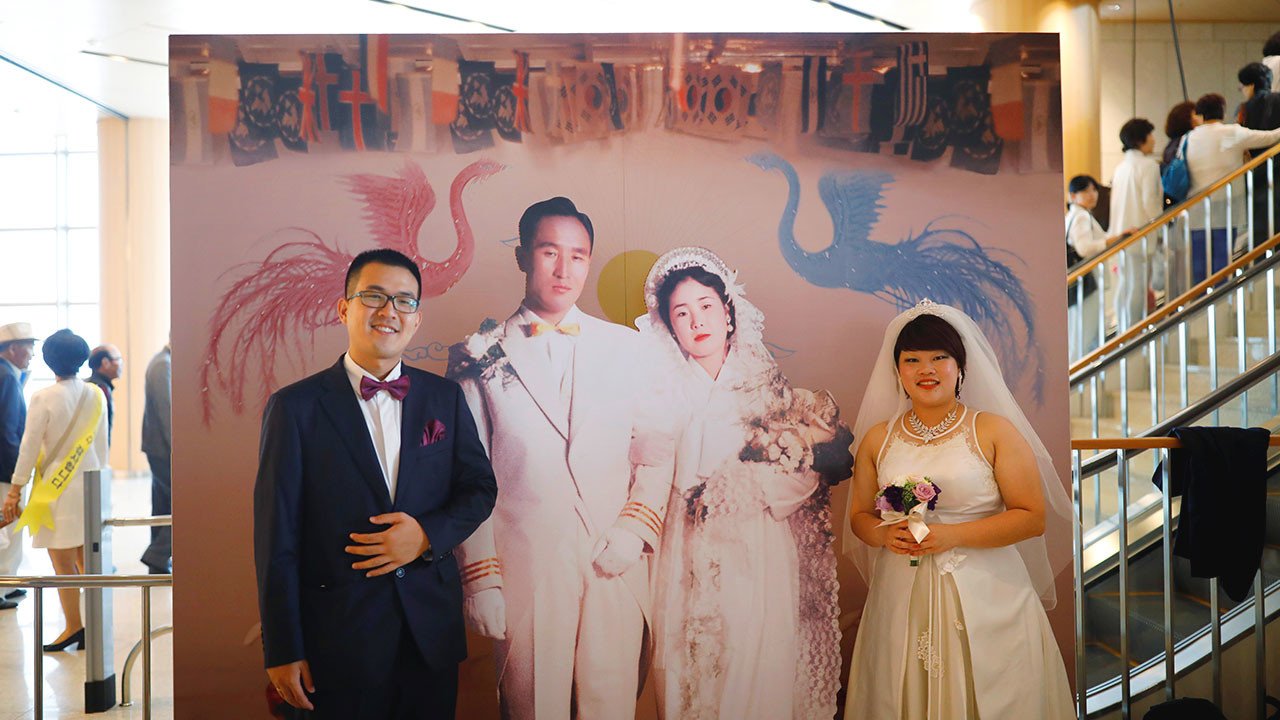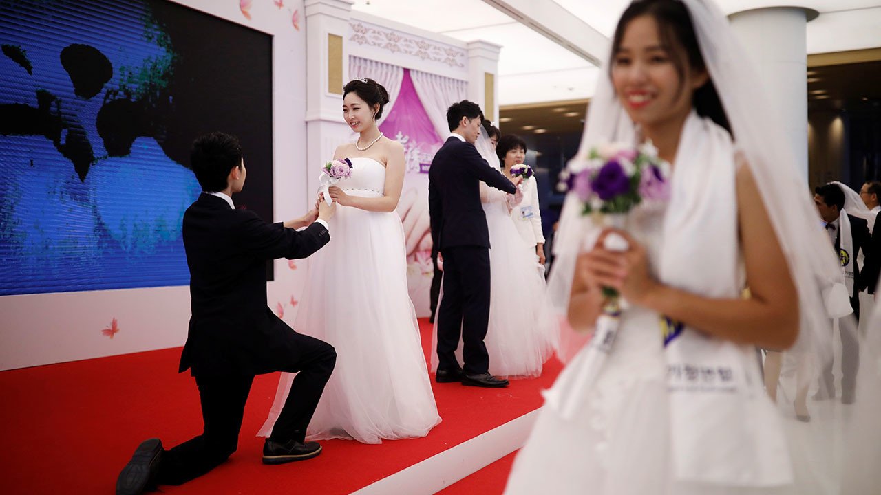 Miles de parejas de 64 países se reúnen en Corea del Sur en una ceremonia de bodas masiva