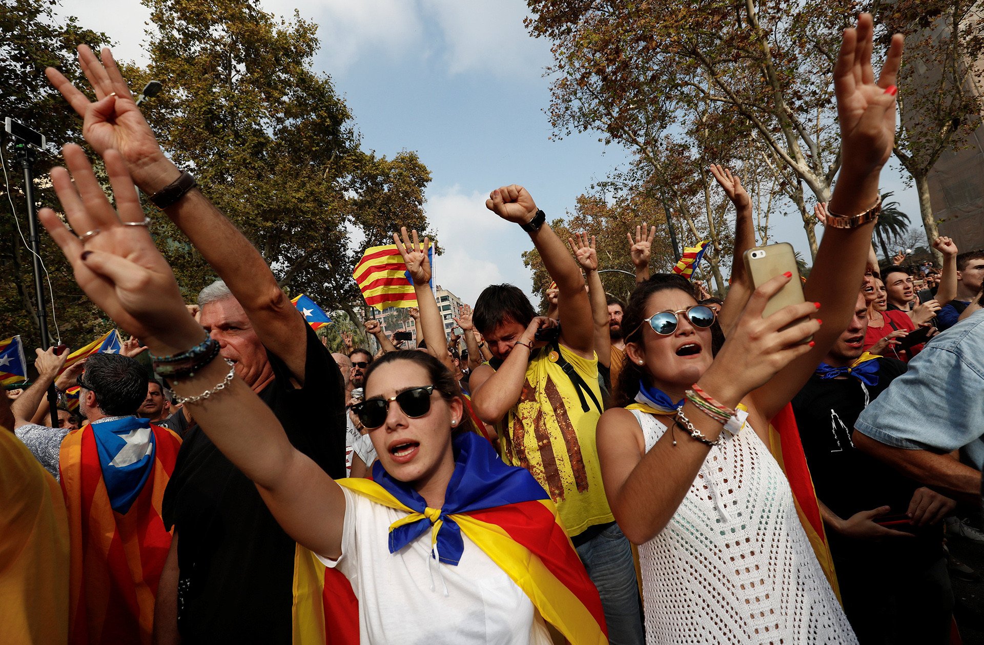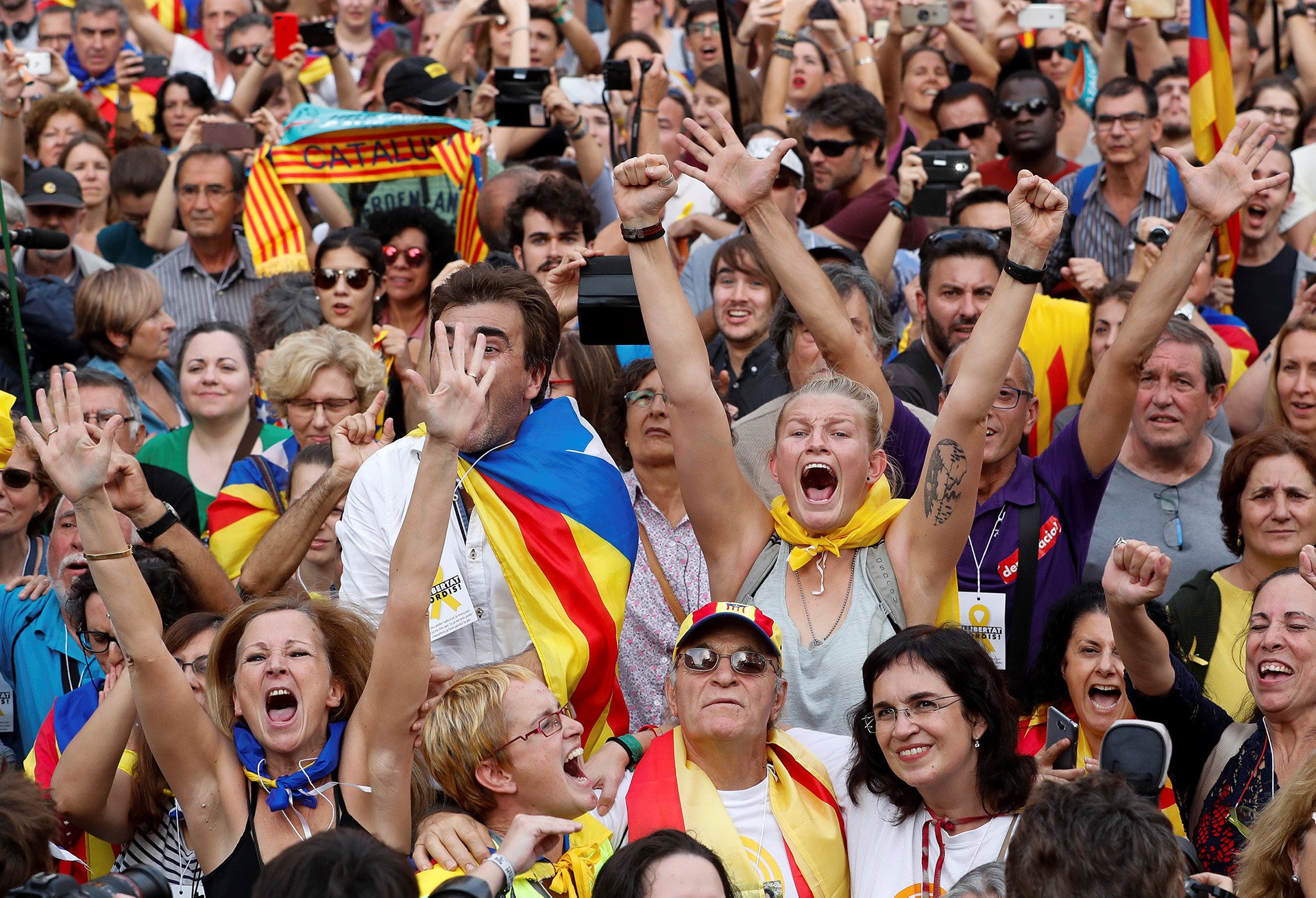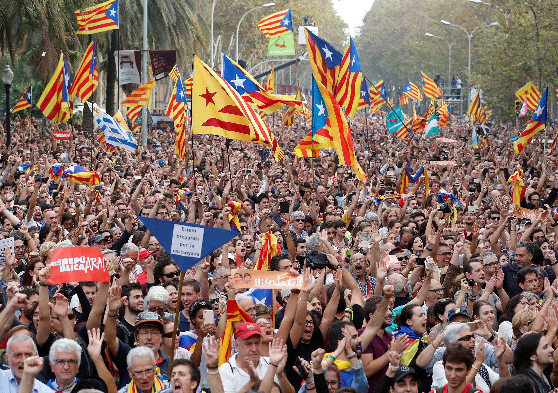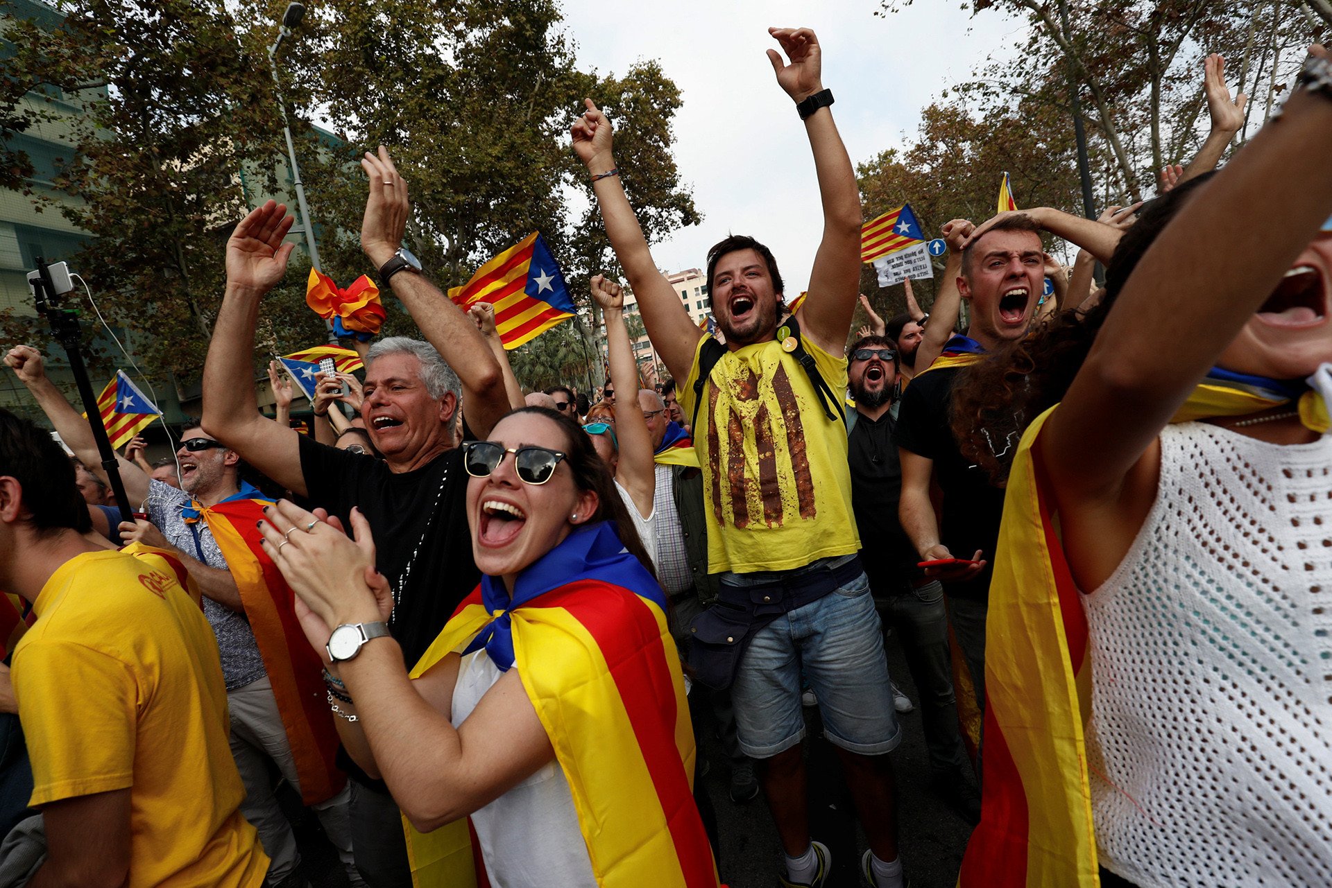 Festejo por la independencia: Las calles de Cataluña se visten de azul, amarillo y rojo