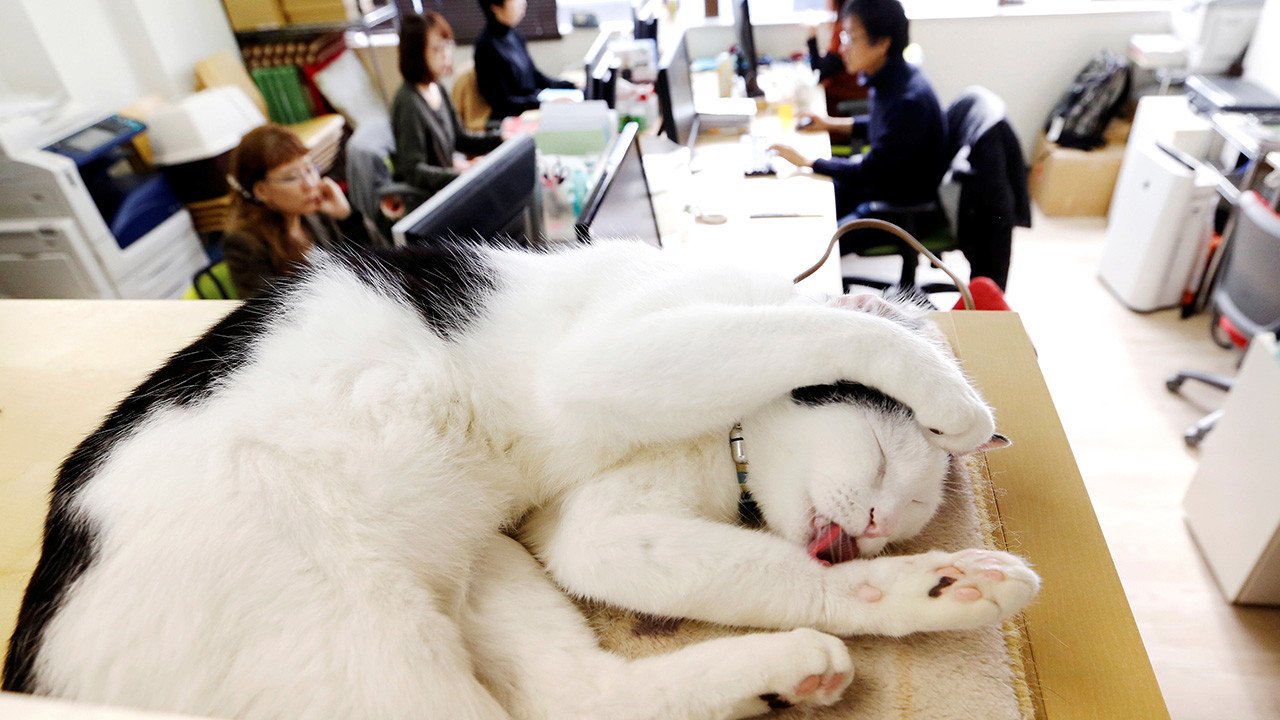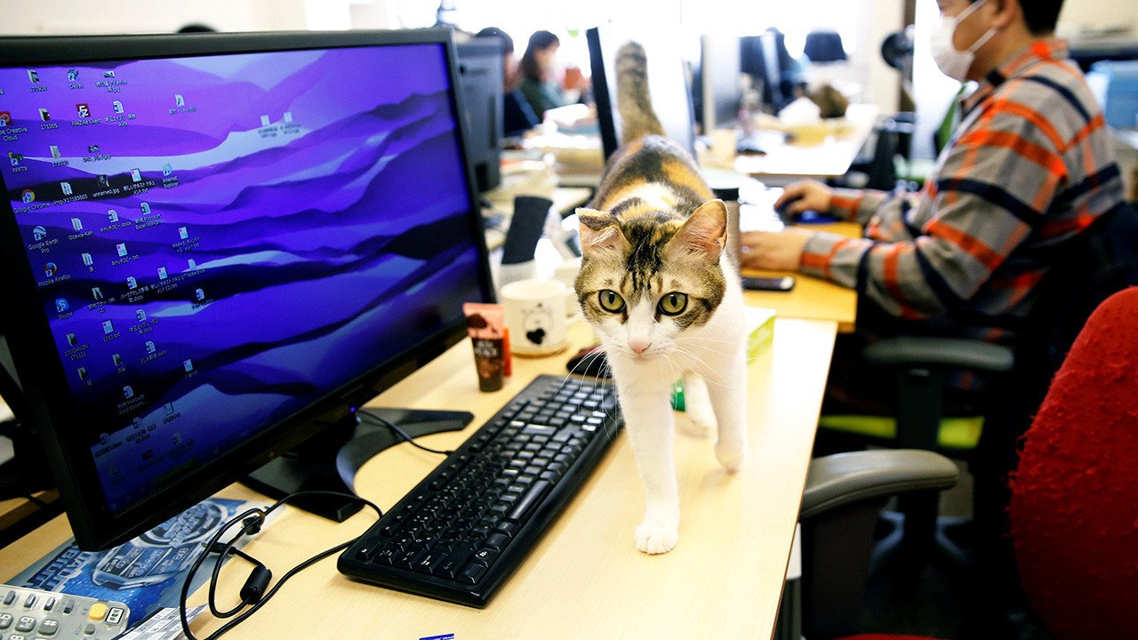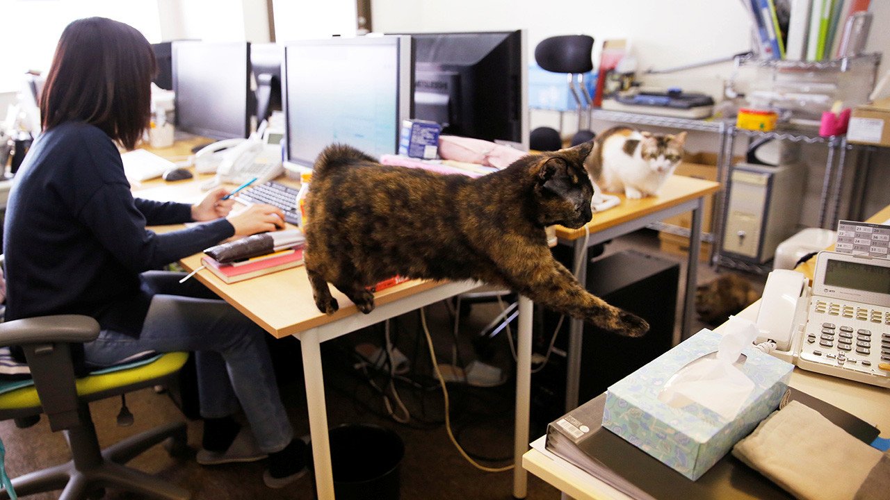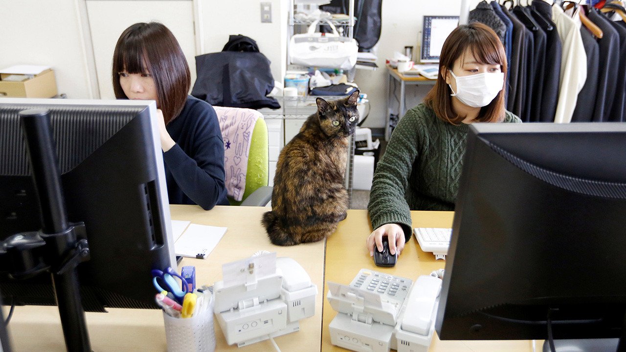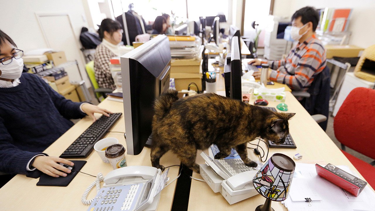 Ferray Corp, una empresa de japonesa de tecnologías de la información, permite que sus empleados se traigan el gato a la oficina. Según la gerencia de la compañía, la comunicación con los animales hace que el trabajo sea menos estresante. Durante la jornada laboral, los gatos caminan alrededor de las mesas de los empleados e incluso participan en las reuniones. Japón es uno de los pocos países que ha reconocido oficialmente el fenómeno llamado 'karoshi': muerte por exceso de trabajo.