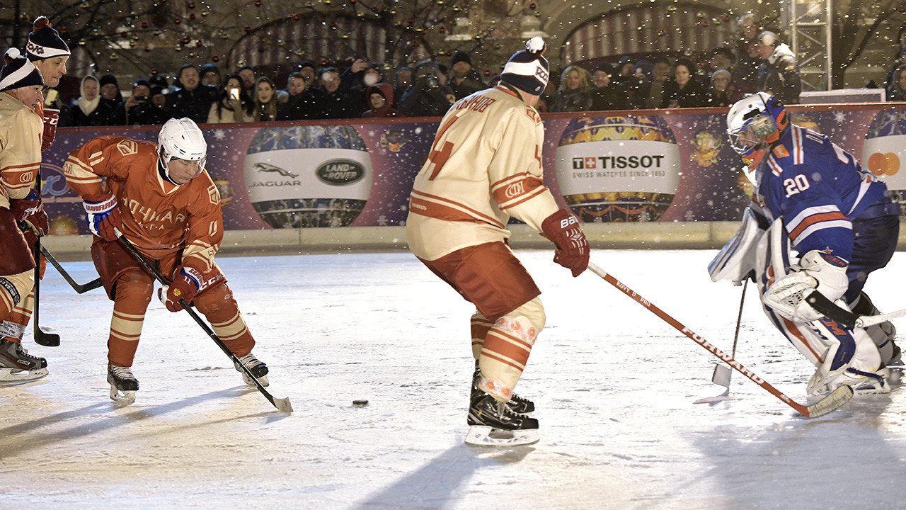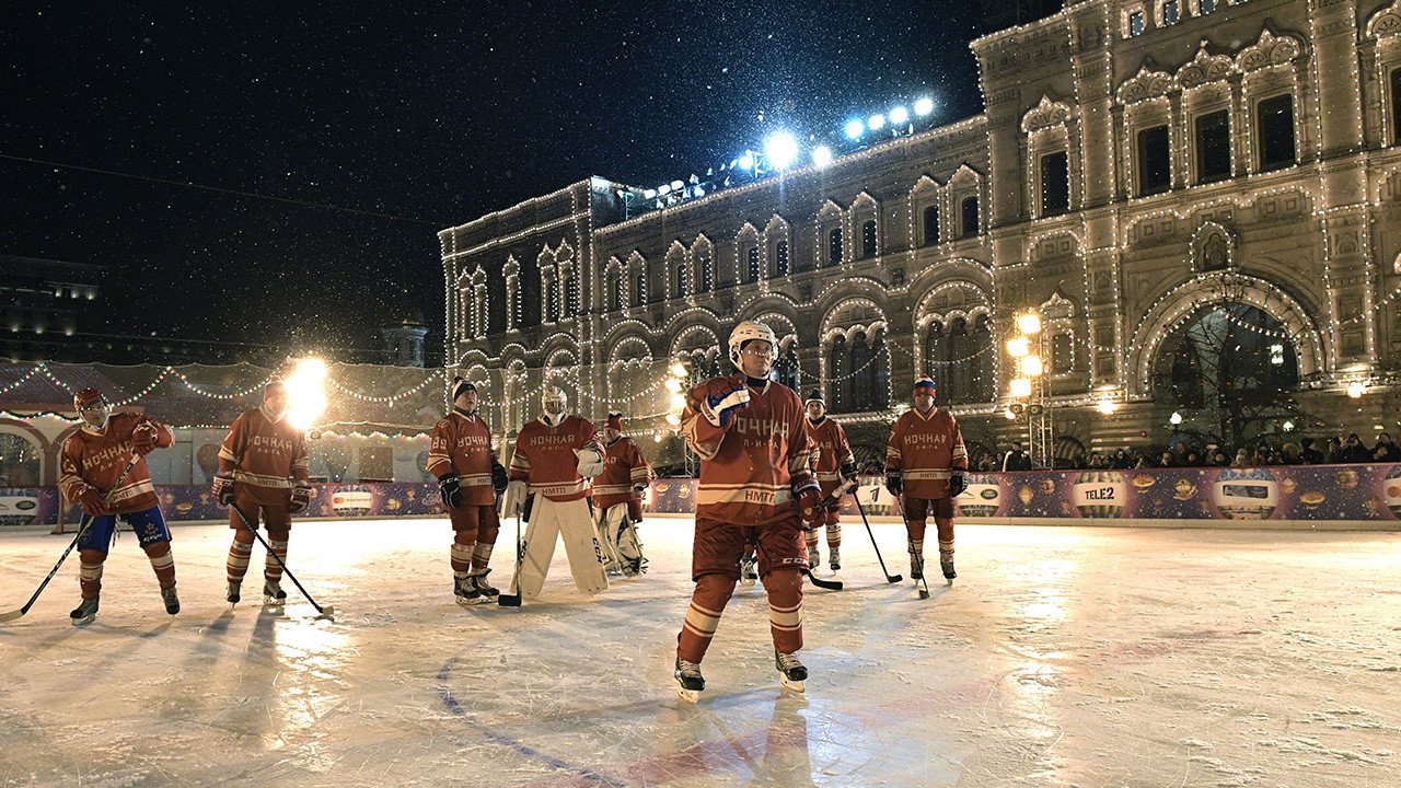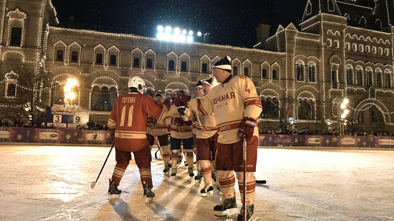 Putin protagoniza un partido de la Liga Nocturna de hockey en la Plaza Roja