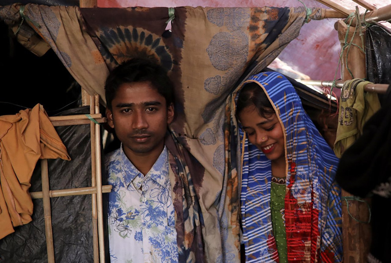 Una pareja birmana de la minoría musulmana rohinyá celebró en diciembre de 2017 su boda en el campo de refugiados de Kutupalong, uno de los muchos asentamientos de postes de bambú y láminas de plástico en el distrito Cox's Bazar de Bangladés.