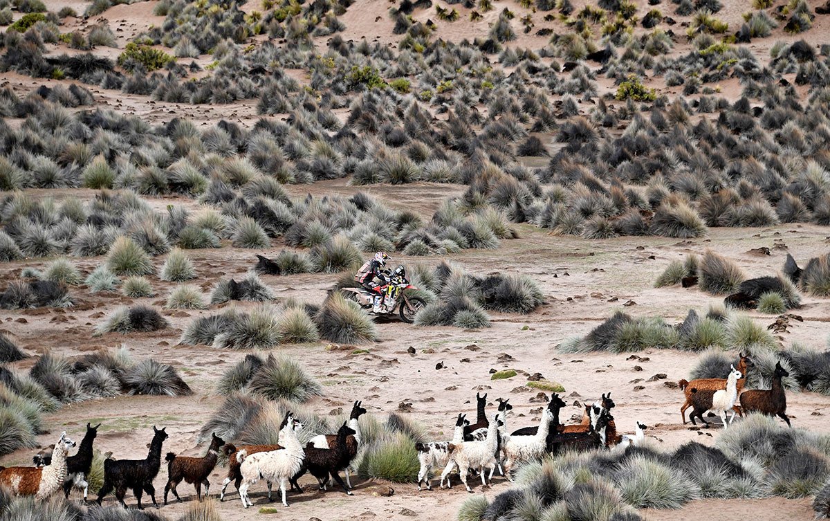 En esta serie de fotografías se aprecia la curiosa reacción de un grupo de llamas que parecen empeñadas en competir con los pilotos durante la cuadragésima edición de la carrera Dakar Rally 2018, celebrado en Perú, Bolivia y Argentina.