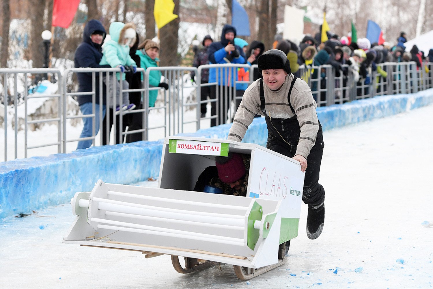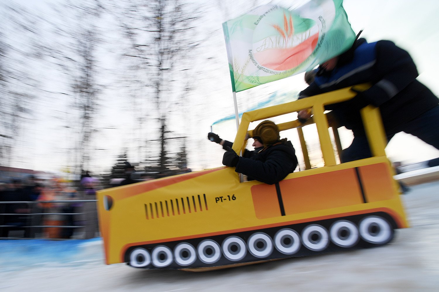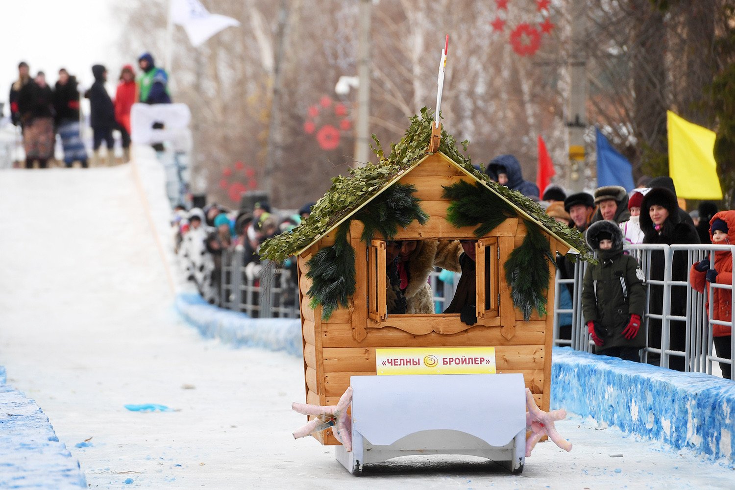 La localidad tártara de Mamadysh, en Rusia, fue escenario este sábado de un vistoso concurso de trineos improvisados. En el certamen participaron unos treinta equipos que construyeron trineos con sus propias manos y comparecieron con disfraces especiales. Los modelos de estos entusiastas 'ingenieros' compitieron tanto en velocidad como en distancia recorrida. Hubo trineos en forma de tanque, trono con reina de las nieves, barco pirata hinchable y hasta un campo de fútbol con portería y todo.