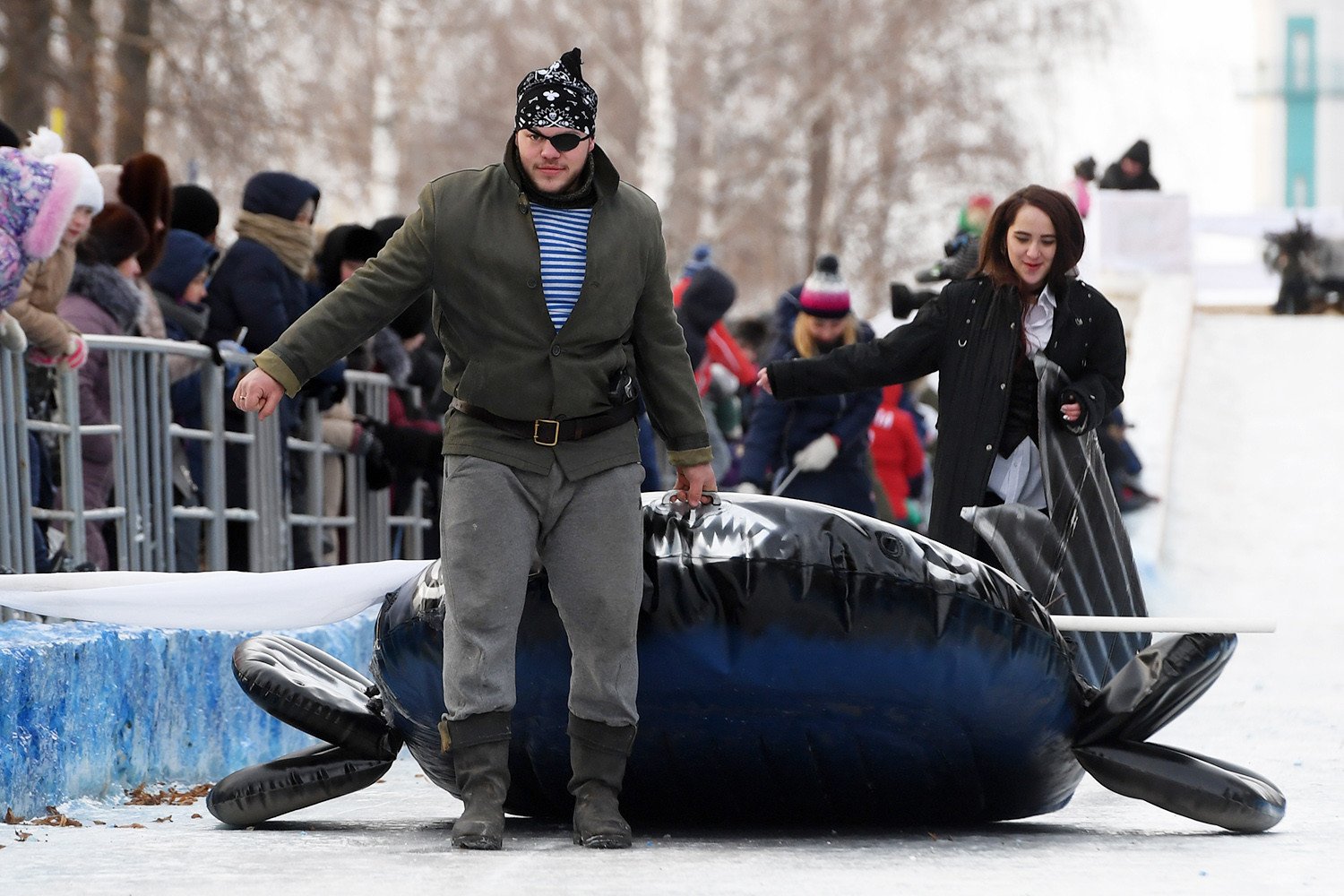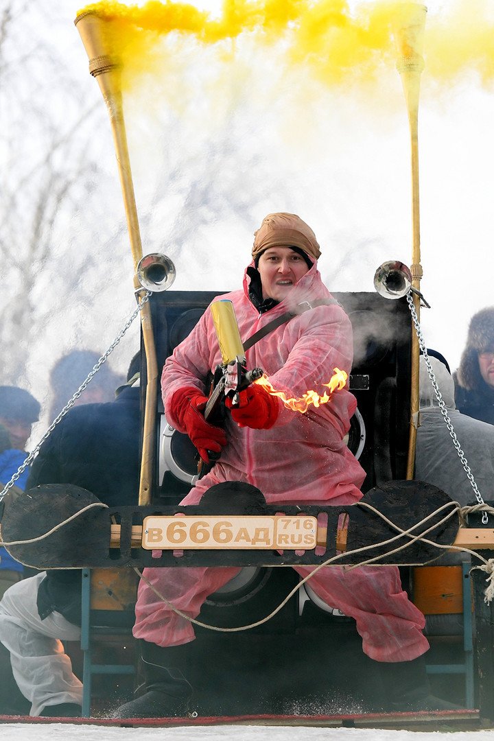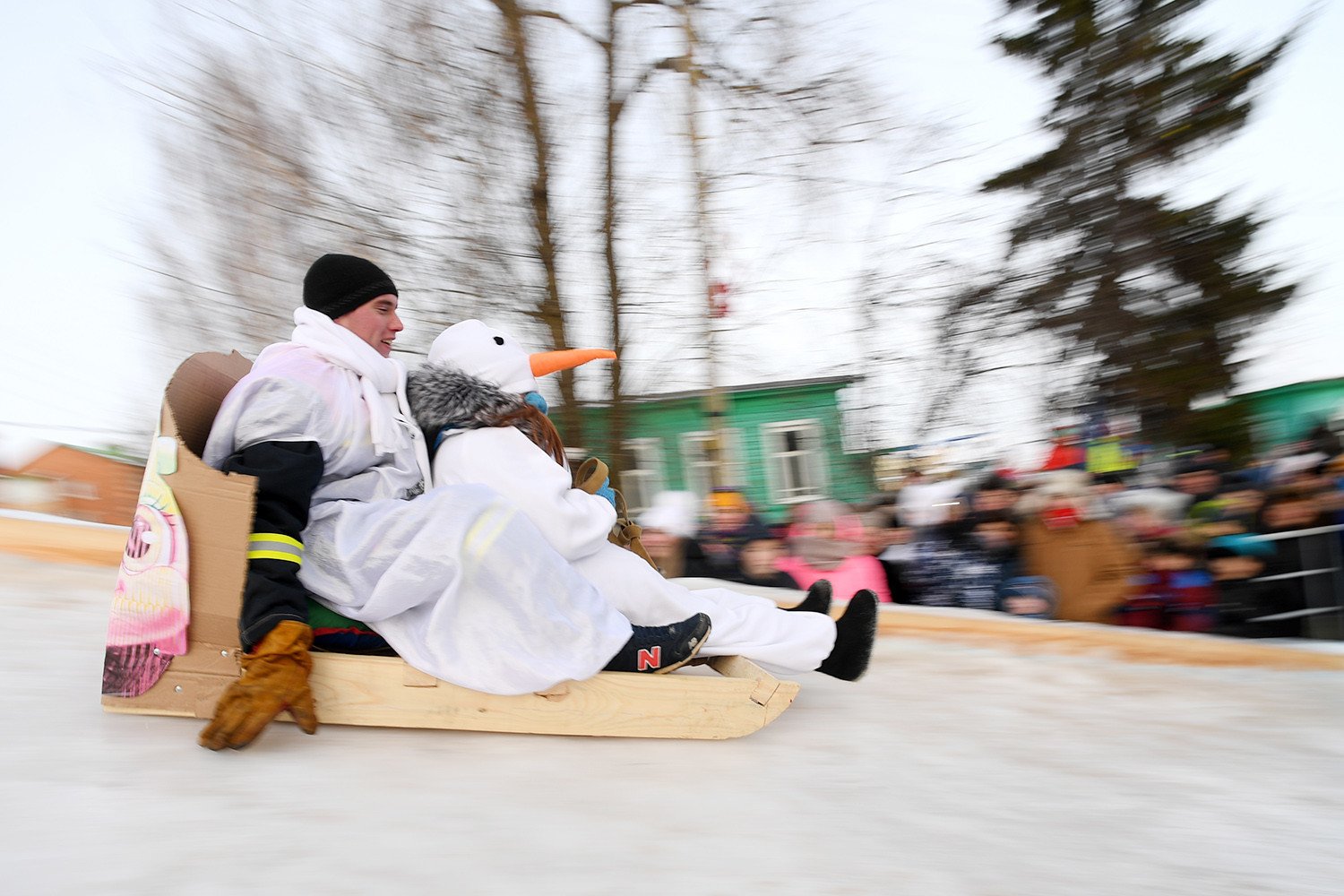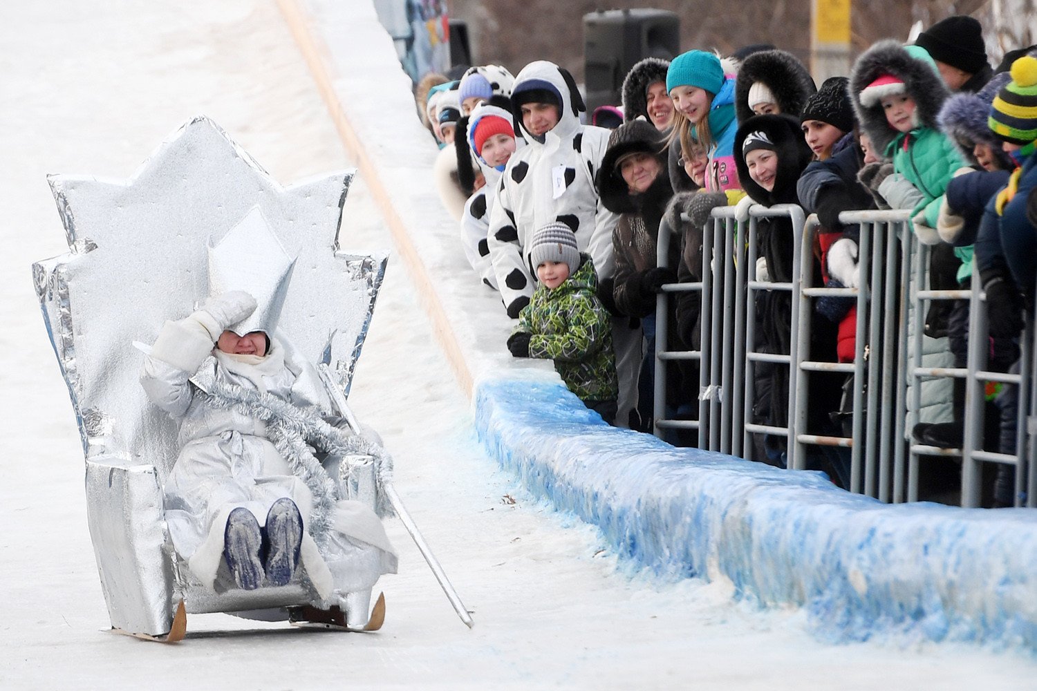 La localidad tártara de Mamadysh, en Rusia, fue escenario este sábado de un vistoso concurso de trineos improvisados. En el certamen participaron unos treinta equipos que construyeron trineos con sus propias manos y comparecieron con disfraces especiales. Los modelos de estos entusiastas 'ingenieros' compitieron tanto en velocidad como en distancia recorrida. Hubo trineos en forma de tanque, trono con reina de las nieves, barco pirata hinchable y hasta un campo de fútbol con portería y todo.