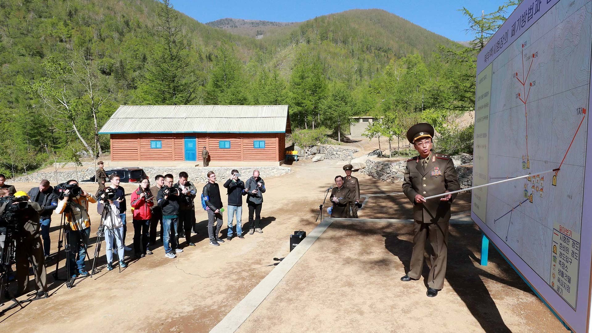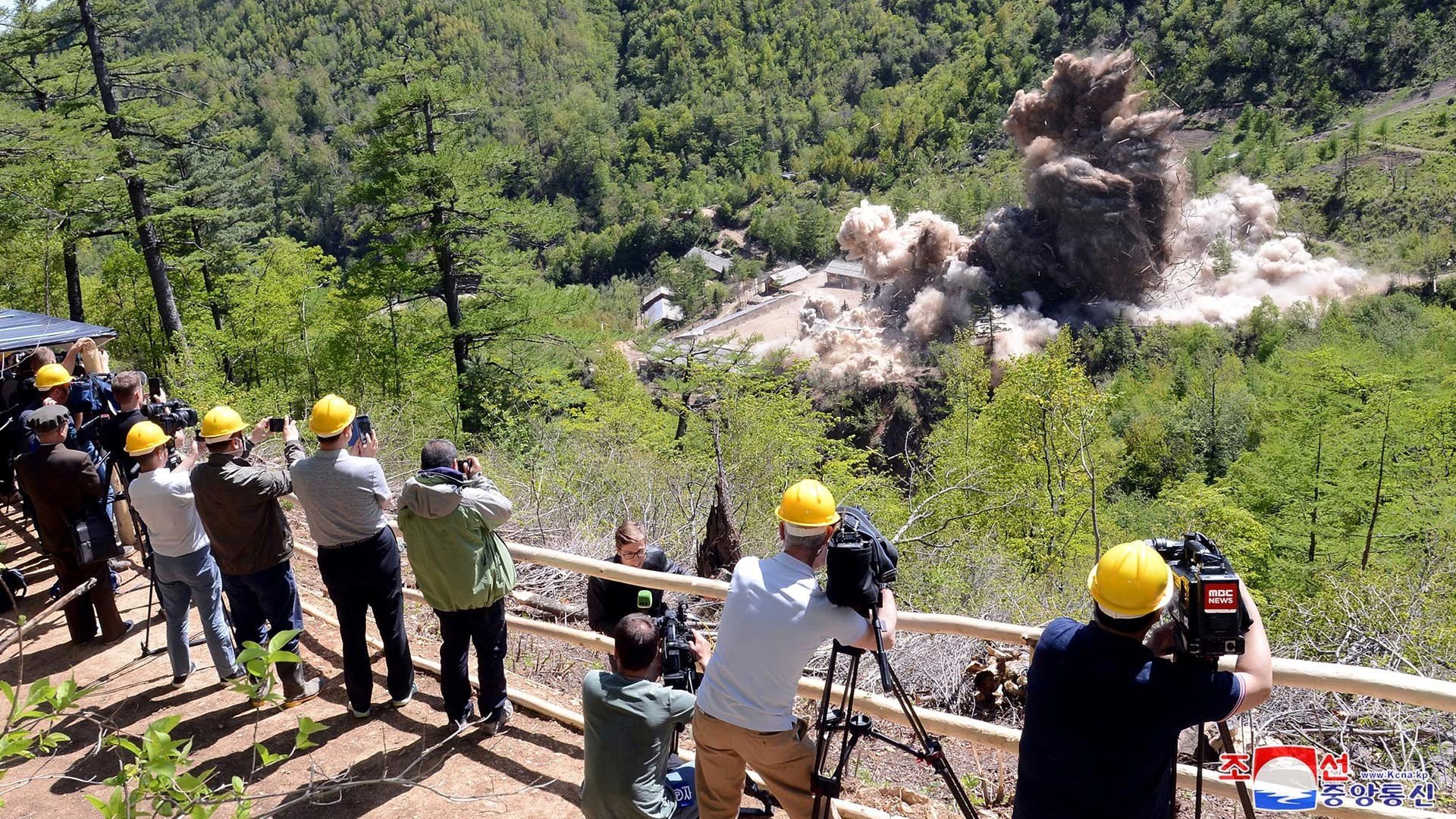 Este jueves se ha llevado a cabo el desmantelamiento del polígono nuclear norcoreano de Punggye-ri. Los tres túneles operativos y las estructuras de superficie del polígono han sido volados ante la vista de periodistas internacionales.